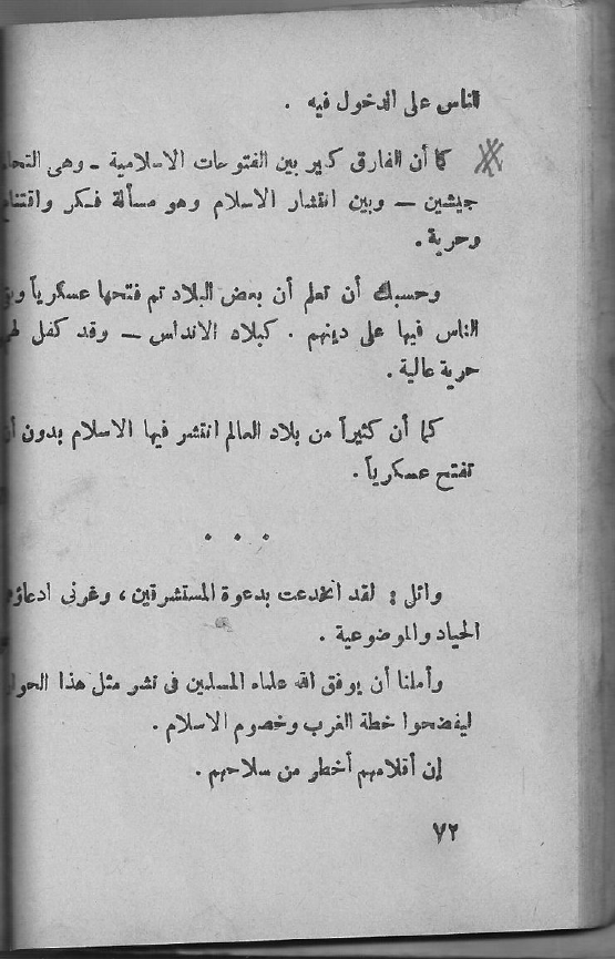 كما أن الفارق كبير بين الفتوحات الإسلامية - وهي التحام جيشين - وبين انتشار الإسلام وهو مسألة فكر واقتناع وحرية.