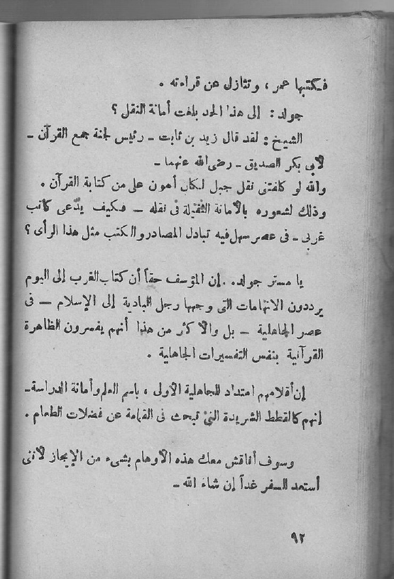 يا مستر جولد .. إن المؤسف حقاً أن كتاب الغرب إلى اليوم يرددون الاتهامات التي وجهها رجل البادية إلى الإسلام - في عصر الجاهلية - بل والأكثر من هذا أنهم يفسرون الظاهرة القرآنية بنفس التفسيرات الجاهلية.