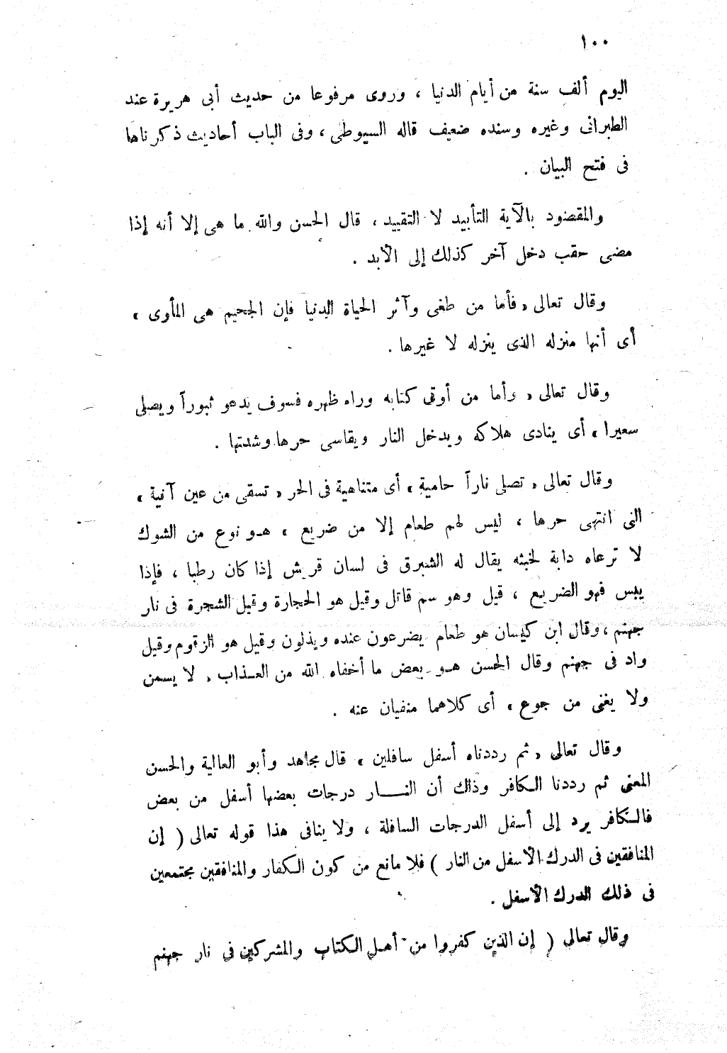 الْيَوْم ألف سنة من أَيَّام الدُّنْيَا وروى مَرْفُوعا من حَدِيث أَبى هُرَيْرَة عِنْد الطبرانى وَغَيره وَسَنَده ضَعِيف قَالَه السيوطى وفى الْبَاب أَحَادِيث ذَكرنَاهَا فى فتح الْبَيَان