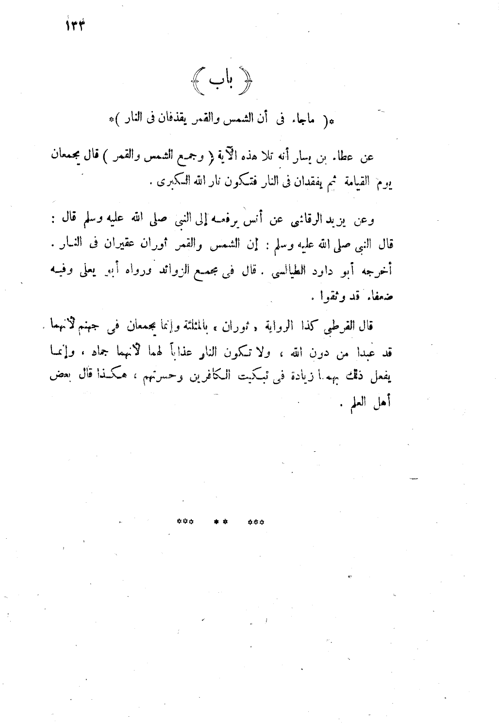 بَاب مَا جَاءَ فى أَن الشَّمْس وَالْقَمَر يقذفان فى النَّار