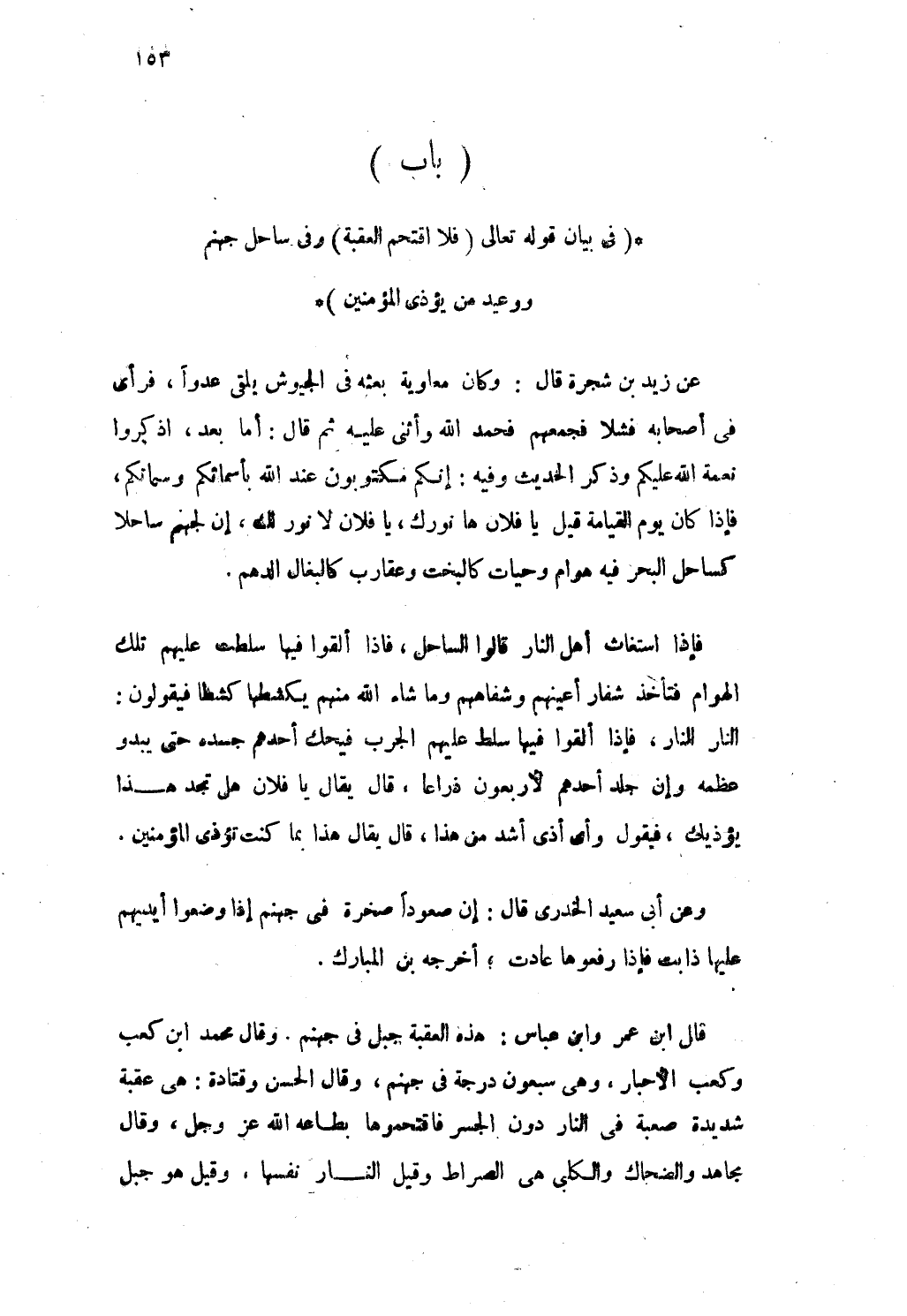 بَاب فى بَيَان قَوْله تَعَالَى فَلَا اقتحم الْعقبَة وفى سَاحل جَهَنَّم ووعيد من يُؤْذى