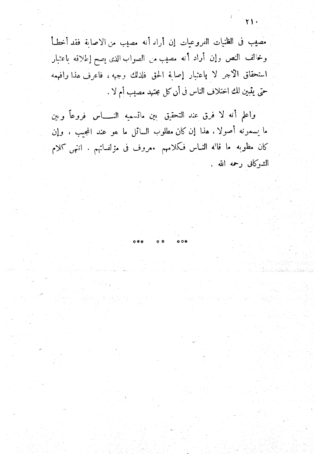 وَاعْلَم أَنه لَا فرق عِنْد التَّحْقِيق بَين مَا تسميه النَّاس فروعا وَبَين مَا يسمونه أصولا هَذَا إِن كَانَ مَطْلُوب السَّائِل مَا هُوَ عِنْد الْمُجيب وَإِن كَانَ مطوبه مَا قَالَه النَّاس فكلامهم مَعْرُوف فى مؤلفاتهم انْتهى كَلَام الشوكانى رَحمَه الله