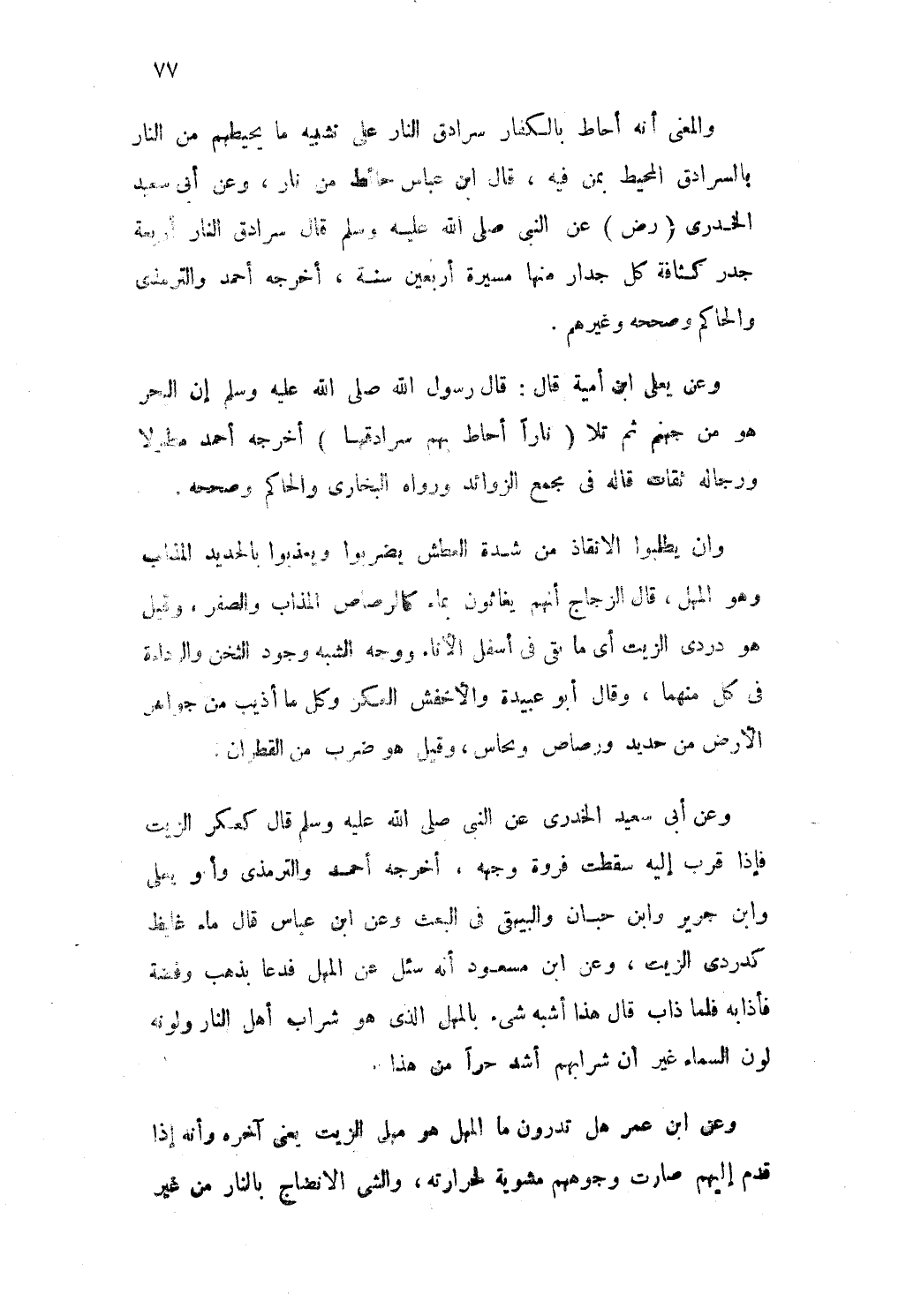 وَعَن يعلى ابْن أُميَّة قَالَ قَالَ رَسُول الله صلى الله عَلَيْهِ وَسلم إِن الْبَحْر هُوَ من جَهَنَّم ثمَّ تَلا {نَارا أحَاط بهم سرادقها} أخرجه أَحْمد مطولا وَرِجَاله ثِقَات قَالَه فى مجمع الزَّوَائِد وَرَوَاهُ البخارى وَالْحَاكِم وَصَححهُ