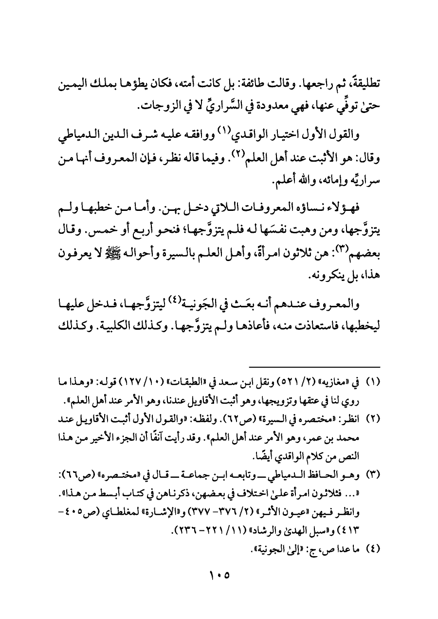 (¬١) في «مغازيه» (٢/ ٥٢١) ونقل ابن سعد في «الطبقات» (١٠/ ١٢٧) قوله: «وهذا ما روي لنا في عتقها وتزويجها، وهو أثبت الأقاويل عندنا، وهو الأمر عند أهل العلم».