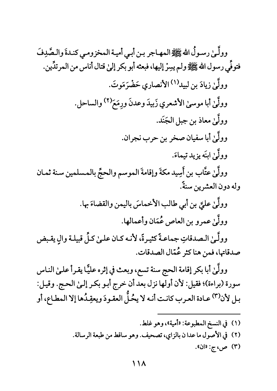 وولَّى الصدقاتِ جماعةً كثيرةً، لأنه كان على كلِّ قبيلة والٍ يقبض صدقاتها، فمن هنا كثر عُمّال الصدقات.