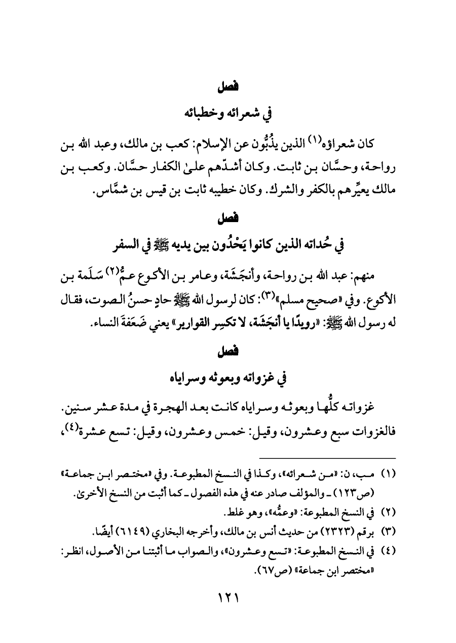 (¬١) مب، ن: «من شعرائه»، وكذا في النسخ المطبوعة. وفي «مختصر ابن جماعة» (ص ١٢٣) ــ والمؤلف صادر عنه في هذه الفصول ــ كما أثبت من النسخ الأخرى.