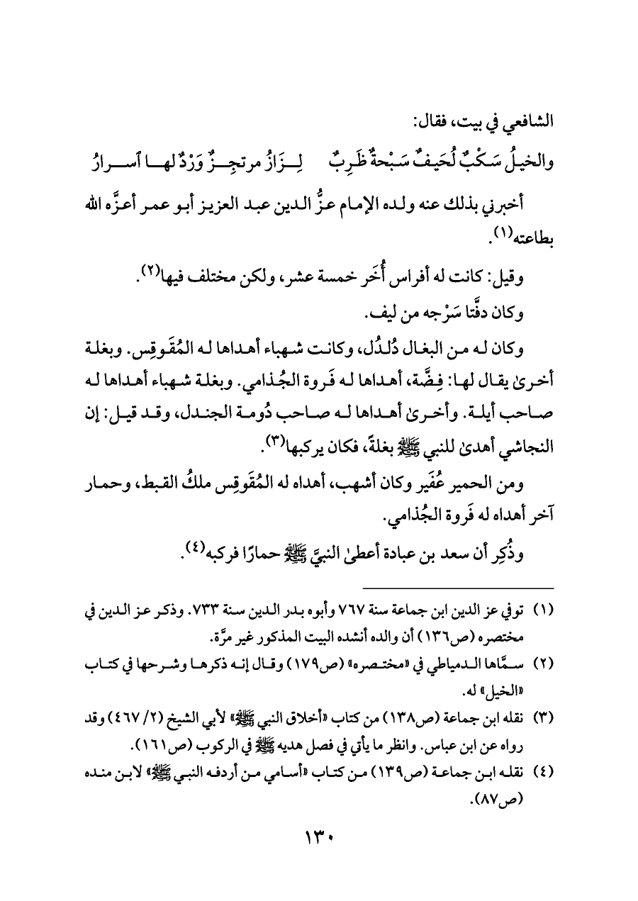 (¬٢) سمَّاها الدمياطي في «مختصره» (ص ١٧٩) وقال إنه ذكرها وشرحها في كتاب «الخيل» له.