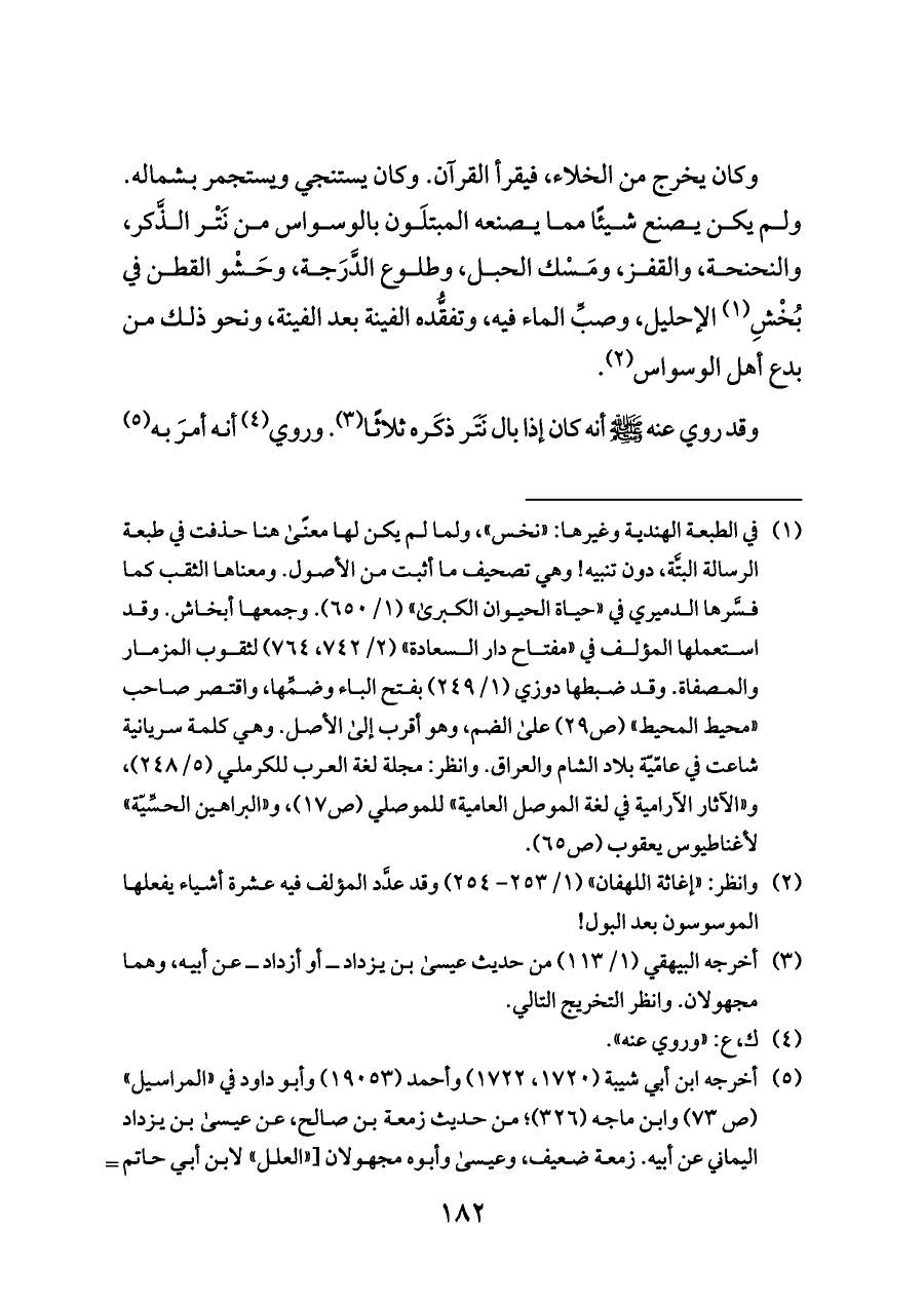 (¬٢) وانظر: «إغاثة اللهفان» (١/ ٢٥٣ - ٢٥٤) وقد عدَّد المؤلف فيه عشرة أشياء يفعلها الموسوسون بعد البول!