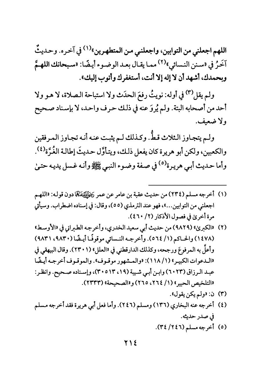 اللهم اجعلني من التوابين، واجعلني من المتطهرين» (¬١) في آخره. وحديثٌ آخَرُ في «سنن النسائي» (¬٢) مما يقال بعد الوضوء أيضًا: «سبحانك اللهمَّ وبحمدك، أشهد أن لا إله إلا أنت، أستغفرك وأتوب إليك».