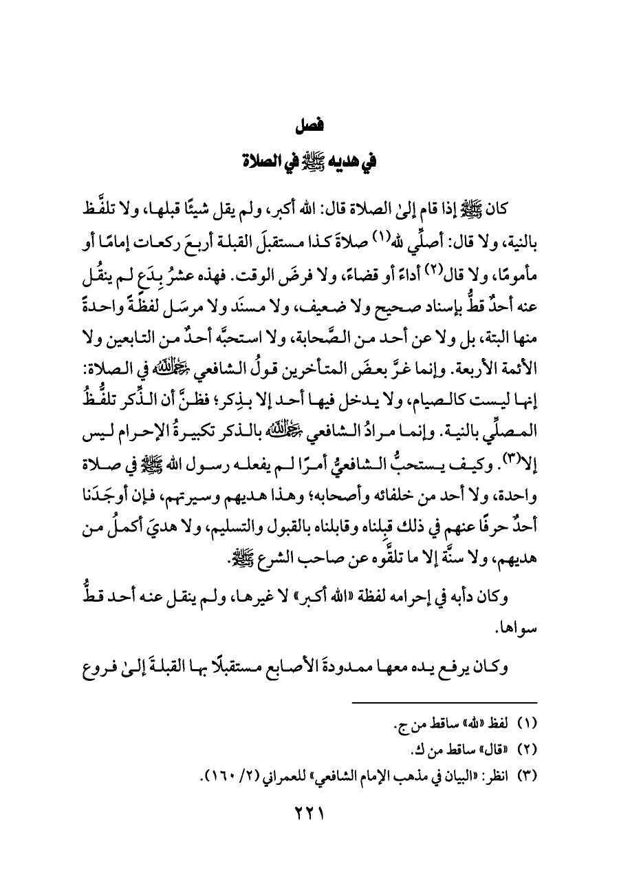 وكان دأبه في إحرامه لفظة «الله أكبر» لا غيرها، ولم ينقل عنه أحد قطُّ سواها.