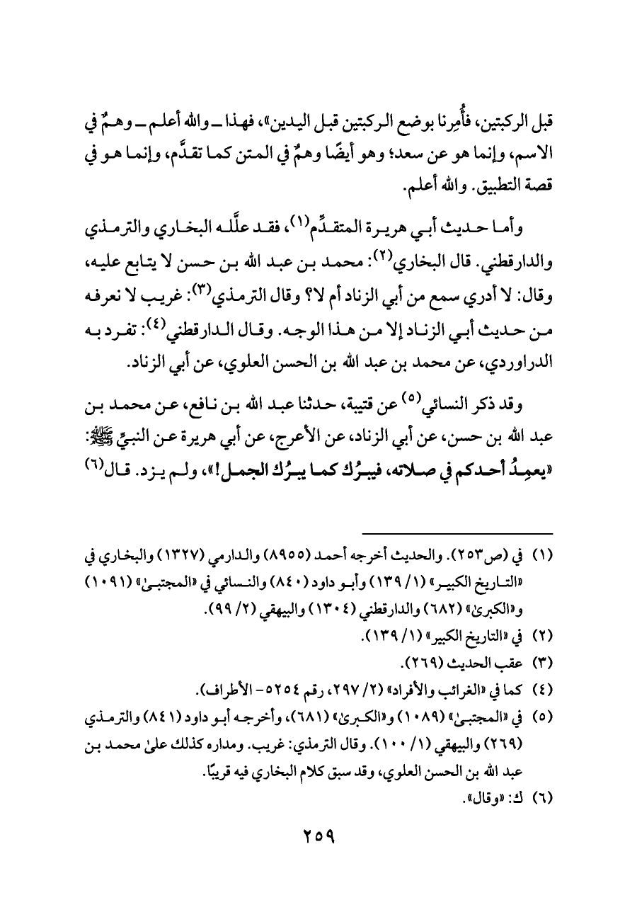 (¬١) في (ص ٢٥٣). والحديث أخرجه أحمد (٨٩٥٥) والدارمي (١٣٢٧) والبخاري في «التاريخ الكبير» (١/ ١٣٩) وأبو داود (٨٤٠) والنسائي في «المجتبى» (١٠٩١) و «الكبرى» (٦٨٢) والدارقطني (١٣٠٤) والبيهقي (٢/ ٩٩).