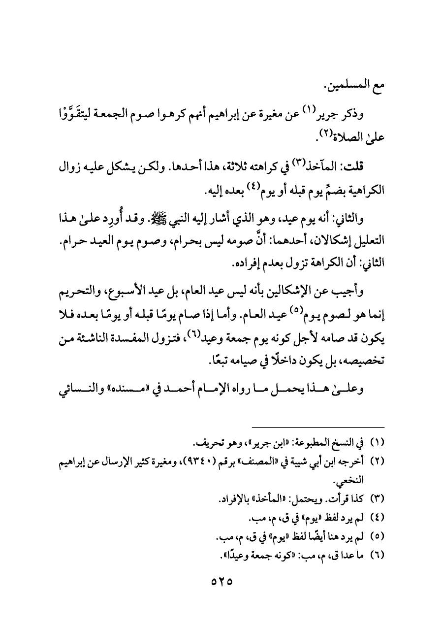 وذكر جرير (¬١) عن مغيرة عن إبراهيم أنهم كرهوا صوم الجمعة ليتقَوَّوْا على الصلاة (¬٢).