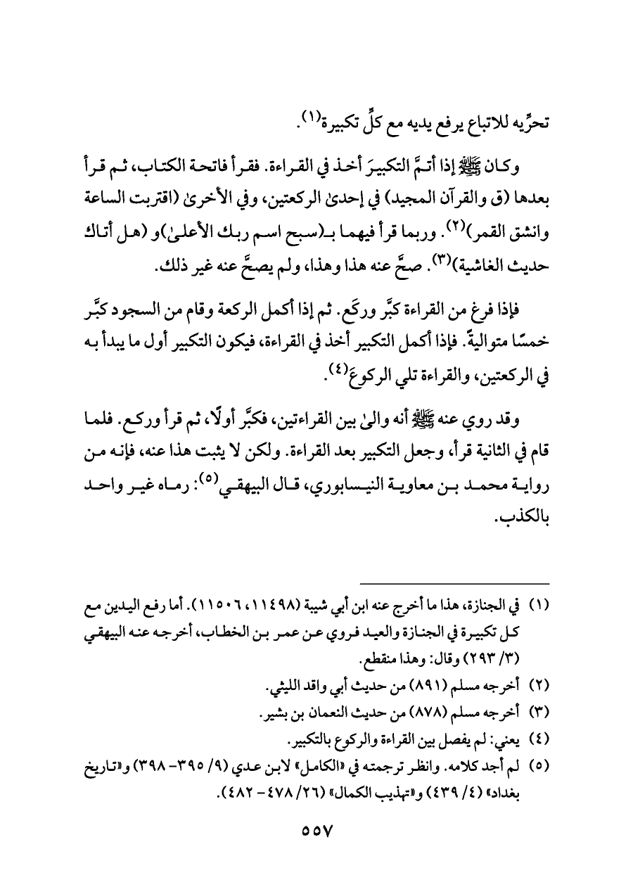 وقد روي عنه - صلى الله عليه وسلم - أنه والى بين القراءتين، فكبَّر أولًا، ثم قرأ وركع. فلما قام في الثانية قرأ، وجعل التكبير بعد القراءة. ولكن لا يثبت هذا عنه، فإنه من رواية محمد بن معاوية النيسابوري، قال البيهقي (¬٥): رماه غير واحد بالكذب.