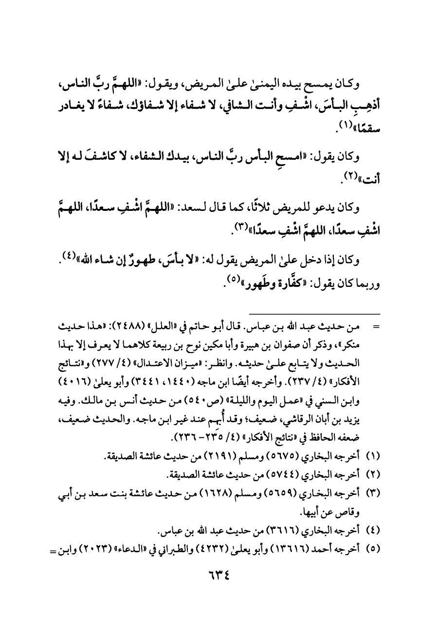 وكان يقول: «امسحِ البأس ربَّ الناس، بيدك الشفاء، لا كاشفَ له إلا أنت» (¬٢).