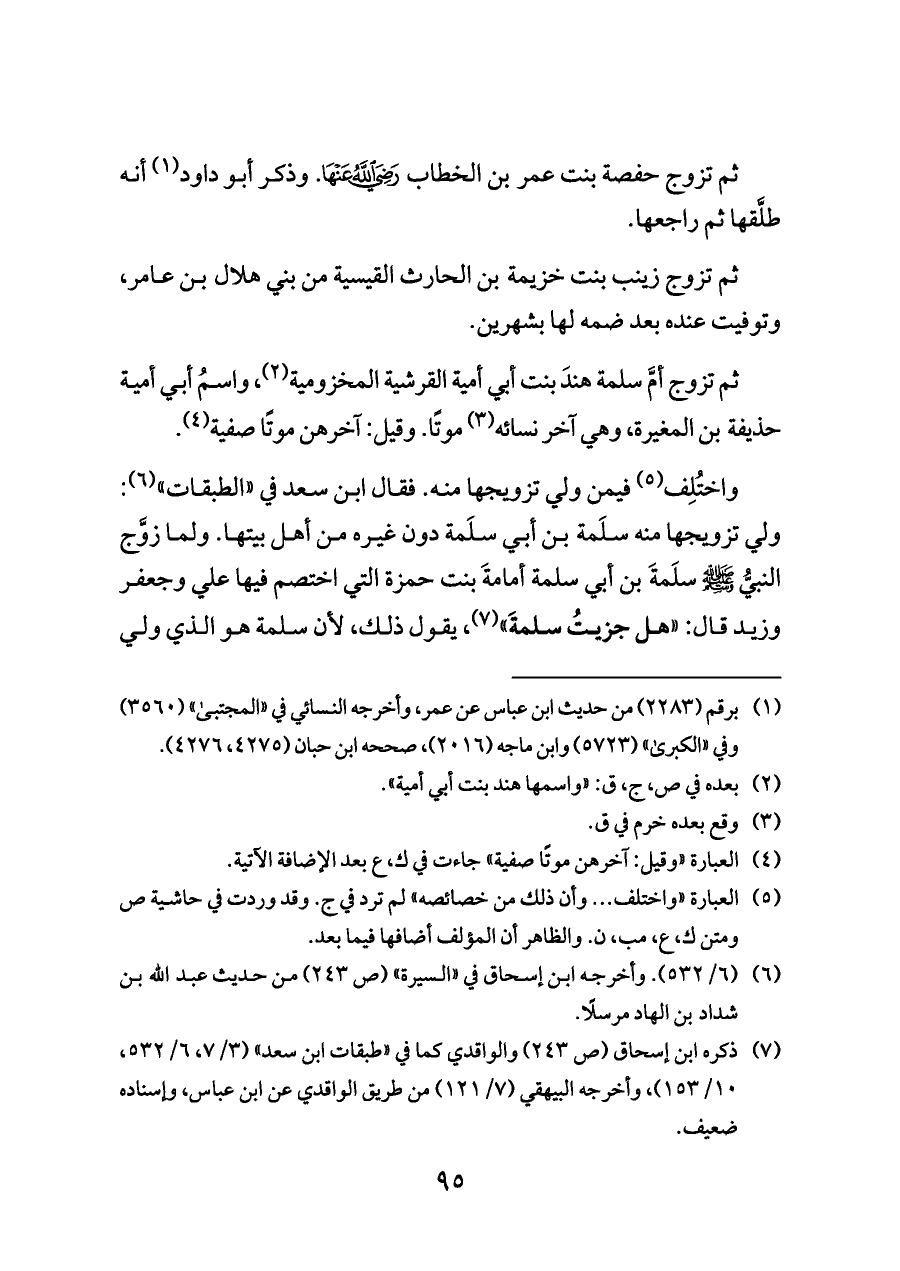 (¬٤) العبارة «وقيل: آخرهن موتًا صفية» جاءت في ك، ع بعد الإضافة الآتية.