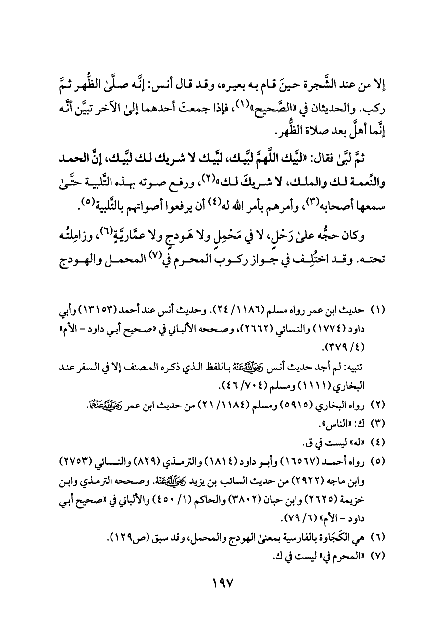 إلا من عند الشَّجرة حينَ قام به بعيره، وقد قال أنس: إنَّه صلَّى الظُّهر ثمَّ ركب. والحديثان في «الصَّحيح» (¬١)، فإذا جمعتَ أحدهما إلى الآخر تبيَّن أنَّه إنَّما أهلَّ بعد صلاة الظُّهر.