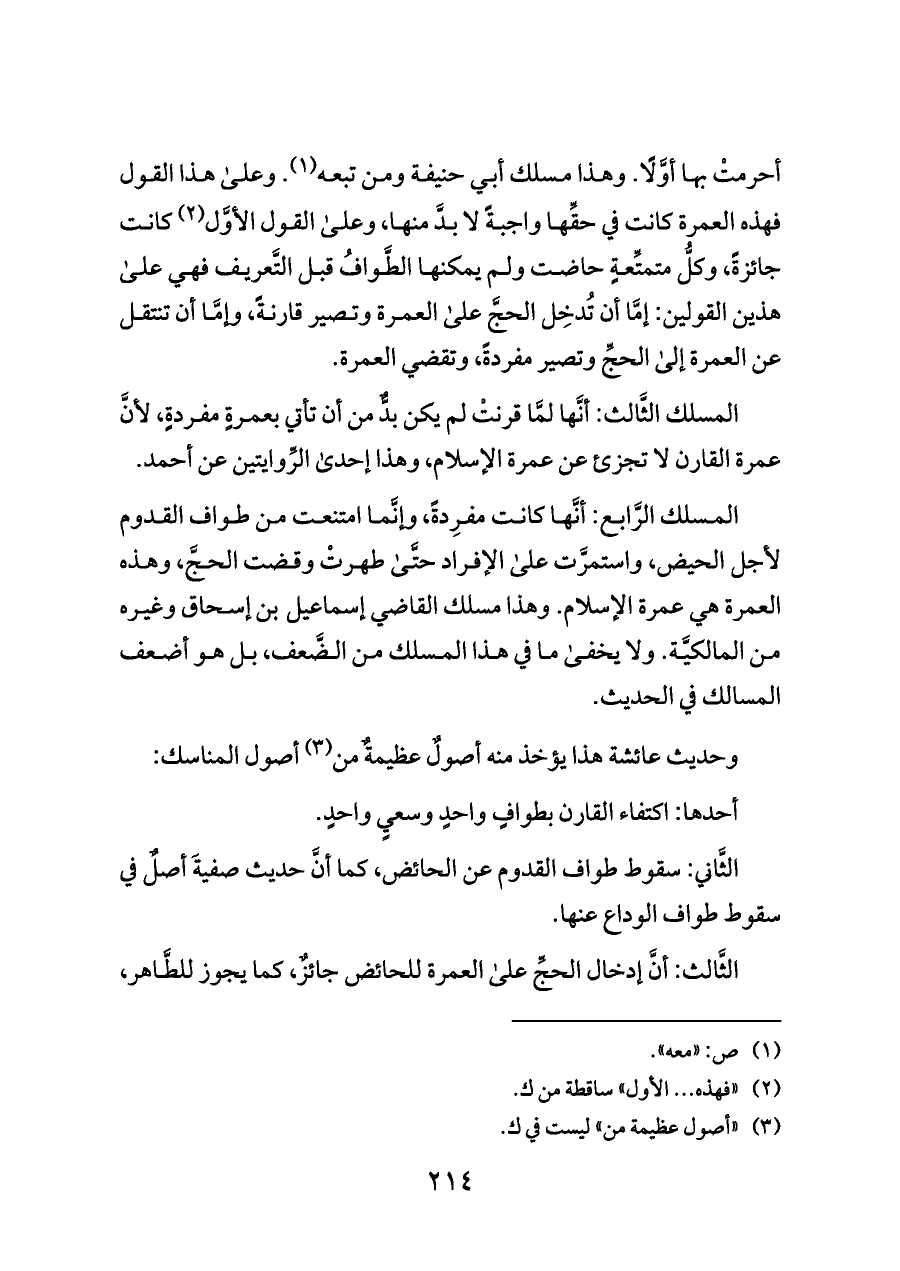 وحديث عائشة هذا يؤخذ منه أصولٌ عظيمةٌ من (¬٣) أصول المناسك: