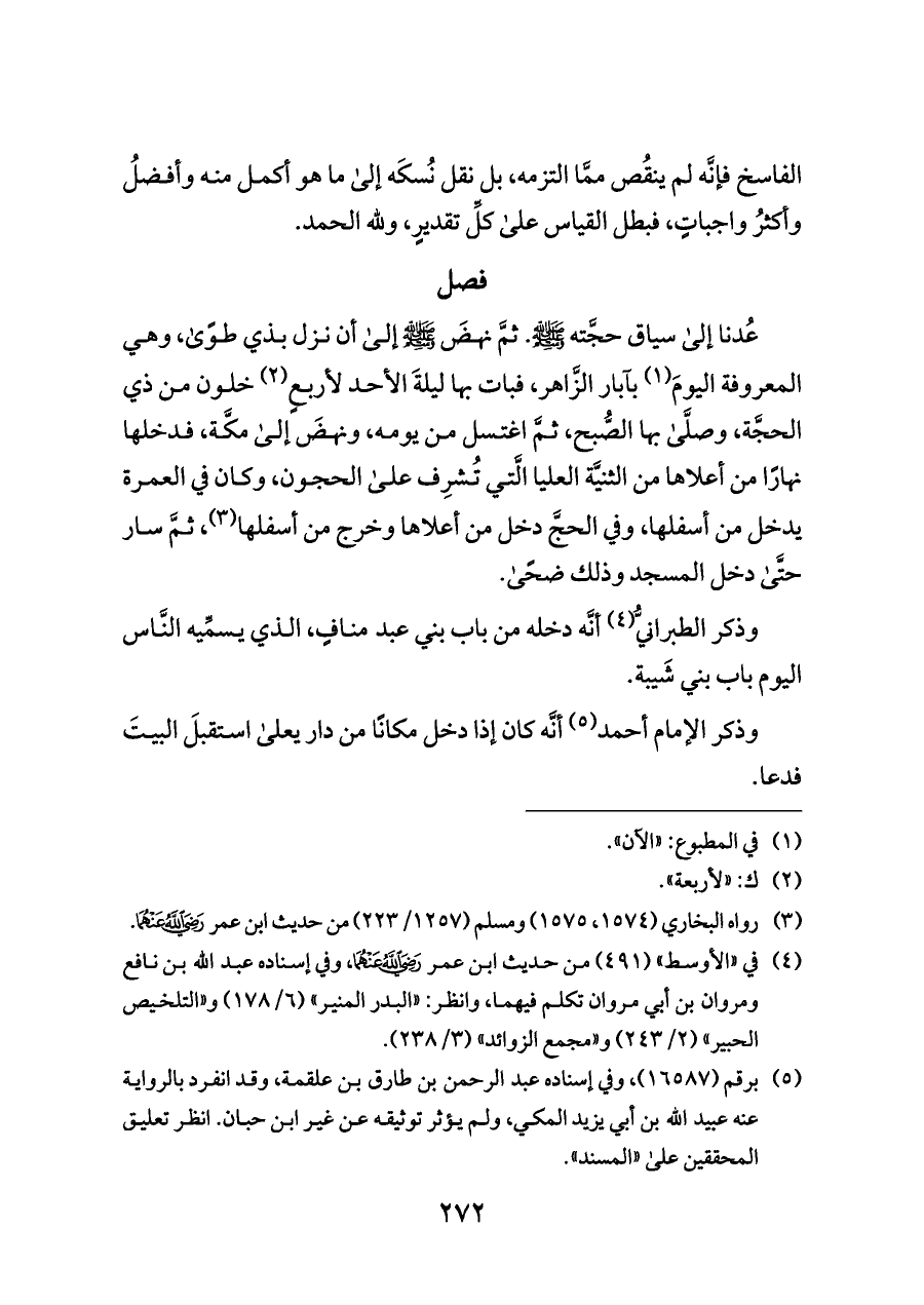 الفاسخ فإنَّه لم ينقُص ممَّا التزمه، بل نقل نُسكَه إلى ما هو أكمل منه وأفضلُ وأكثرُ واجباتٍ، فبطل القياس على كلِّ تقديرٍ، وللَّه الحمد.