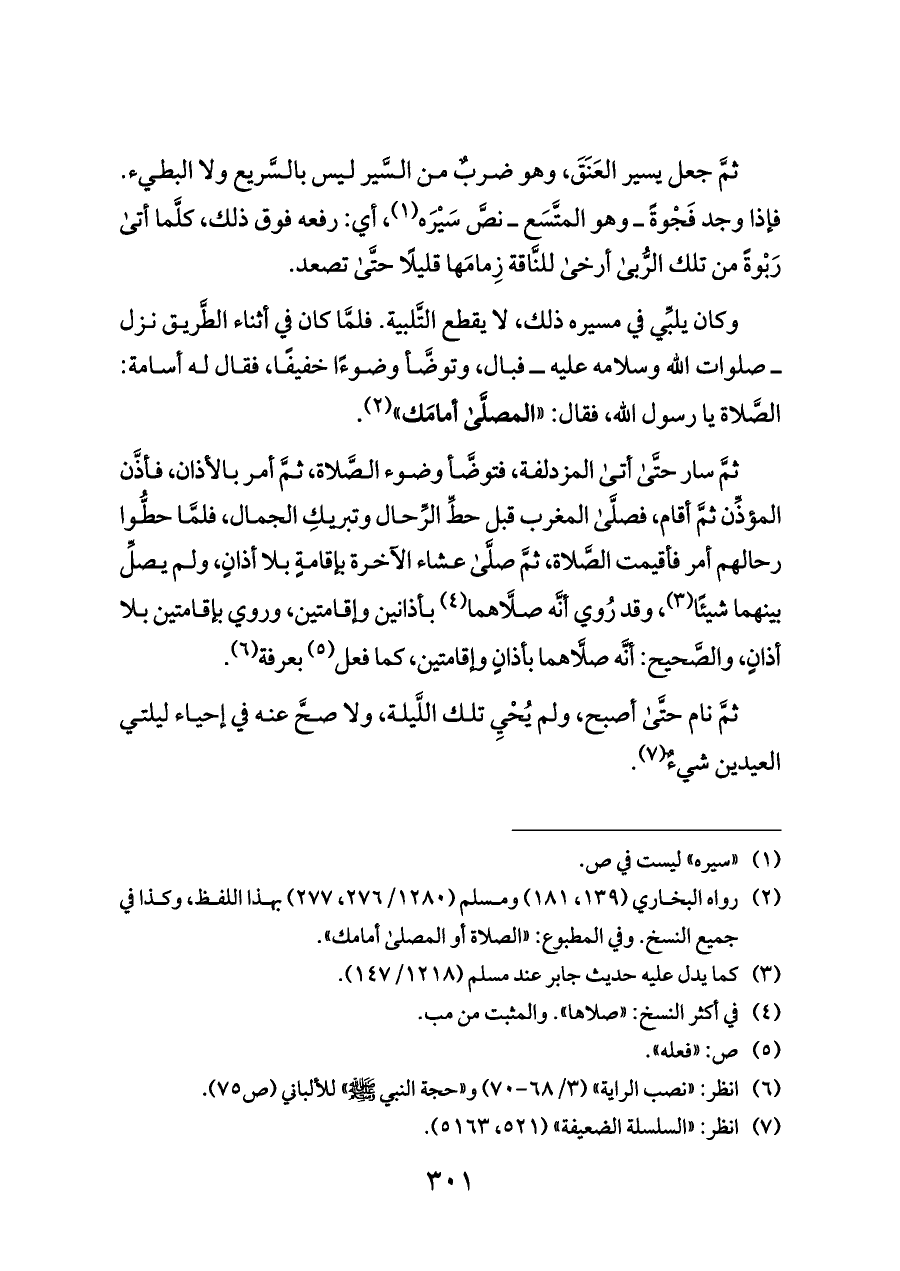 (¬٦) انظر: «نصب الراية» (٣/ ٦٨ - ٧٠) و «حجة النبي - صلى الله عليه وسلم -» للألباني (ص ٧٥).