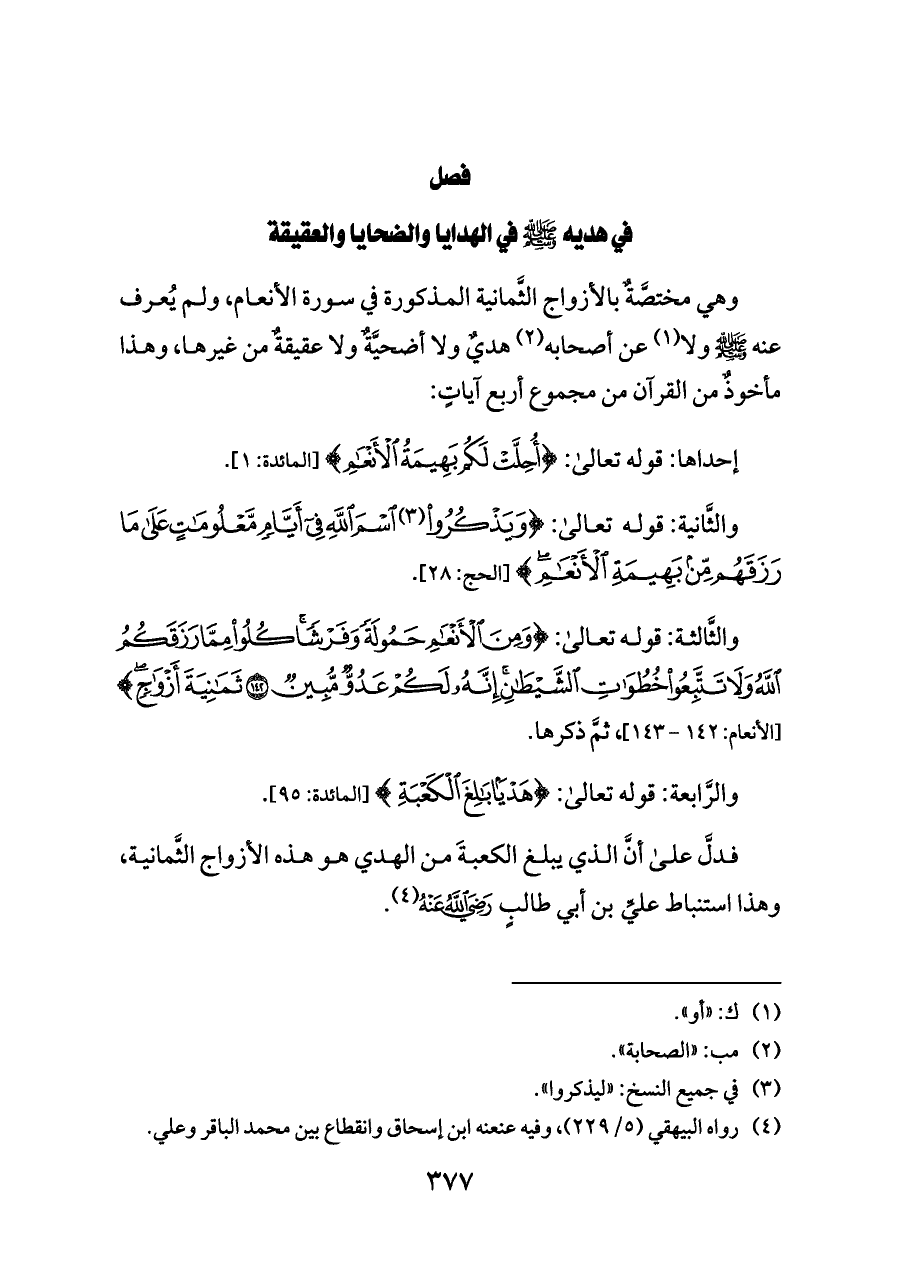 فدلَّ على أنَّ الذي يبلغ الكعبةَ من الهدي هو هذه الأزواج الثَّمانية، وهذا استنباط عليِّ بن أبي طالبٍ - رضي الله عنه - (¬٤).