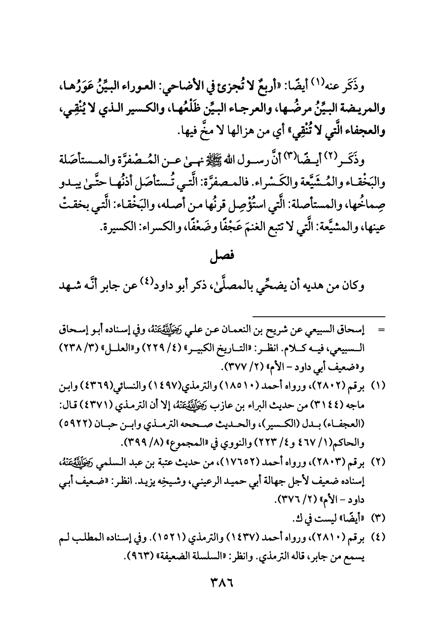 (¬٢) برقم (٢٨٠٢)، ورواه أحمد (١٨٥١٠) والترمذي (١٤٩٧) والنسائي (٤٣٦٩) وابن ماجه (٣١٤٤) من حديث البراء بن عازب- رضي الله عنه - إلا أن الترمذي (٤٣٧١) قال: (العجفاء) بدل (الكسير)، والحديث صححه الترمذي وابن حبان (٥٩٢٢) والحاكم (١/ ٤٦٧ و ٤/ ٢٢٣) والنووي في «المجموع» (٨/ ٣٩٩).
