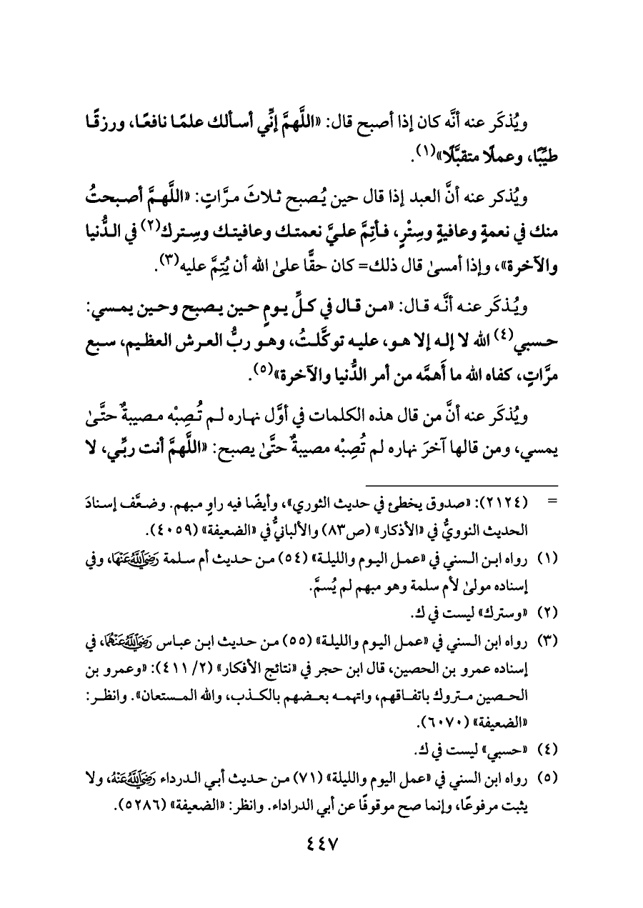 (¬١) رواه ابن السني في «عمل اليوم والليلة» (٥٤) من حديث أم سلمة- رضي الله عنه -، وفي إسناده مولى لأم سلمة وهو مبهم لم يُسمَّ.
