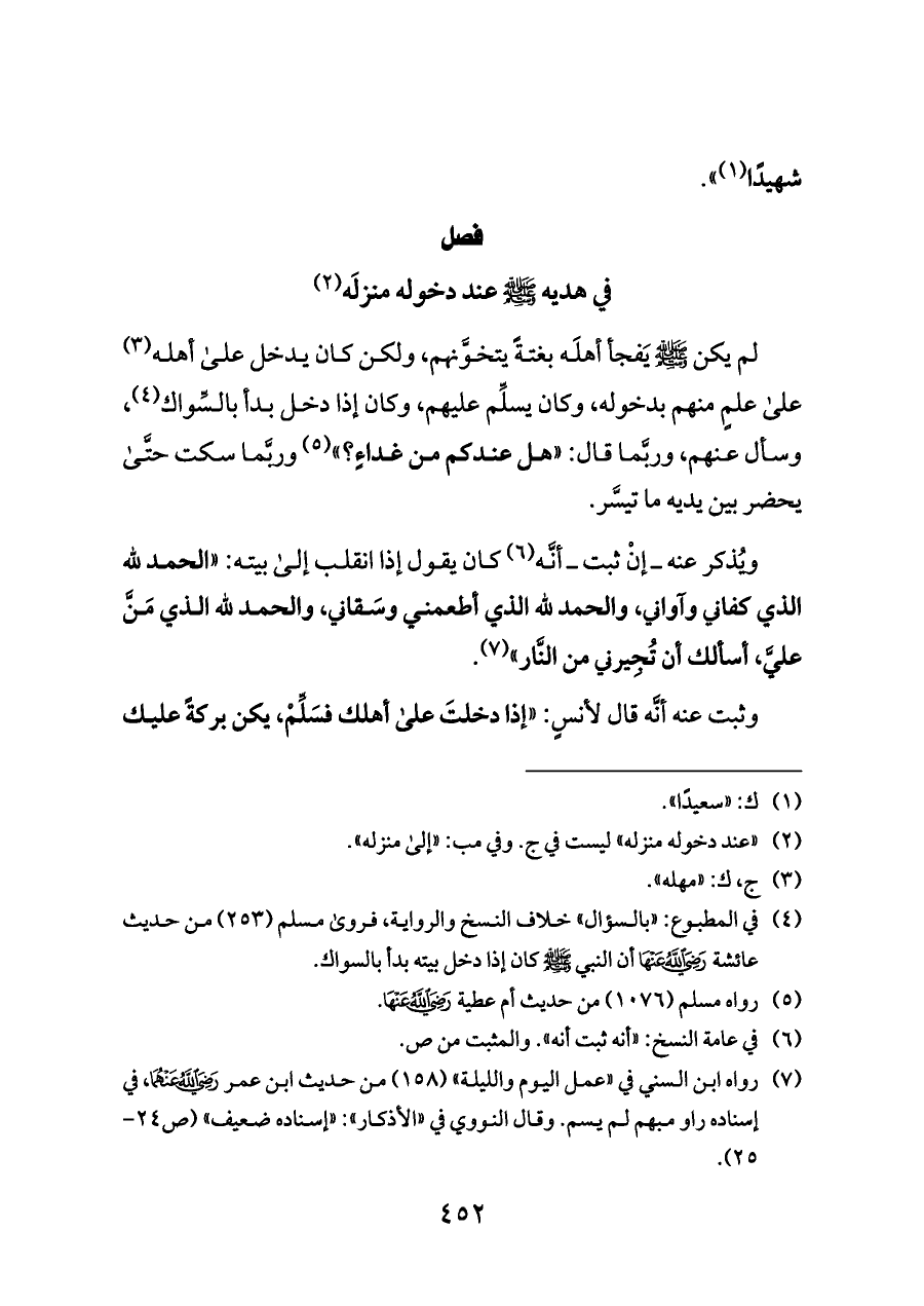 (¬٢) «عند دخوله منزله» ليست في ج. وفي مب: «إلى منزله».