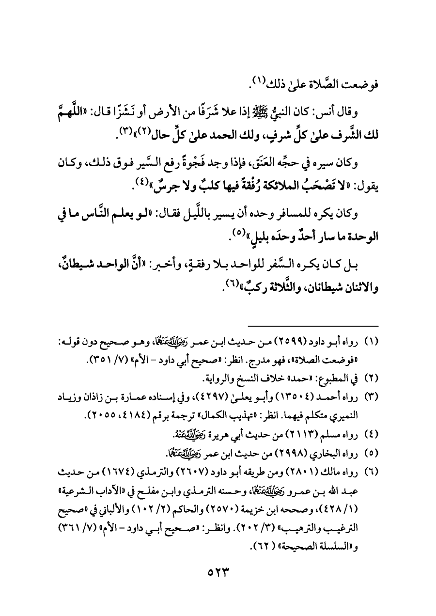 (¬٦) رواه مالك (٢٨٠١) ومن طريقه أبو داود (٢٦٠٧) والترمذي (١٦٧٤) من حديث عبد الله بن عمرو - رضي الله عنهما -، وحسنه الترمذي وابن مفلح في «الآداب الشرعية» (١/ ٤٢٨)، وصححه ابن خزيمة (٢٥٧٠) والحاكم (٢/ ١٠٢) والألباني في «صحيح الترغيب والترهيب» (٣/ ٢٠٢). وانظر: «صحيح أبي داود - الأم» (٧/ ٣٦١) و «السلسلة الصحيحة» (٦٢).