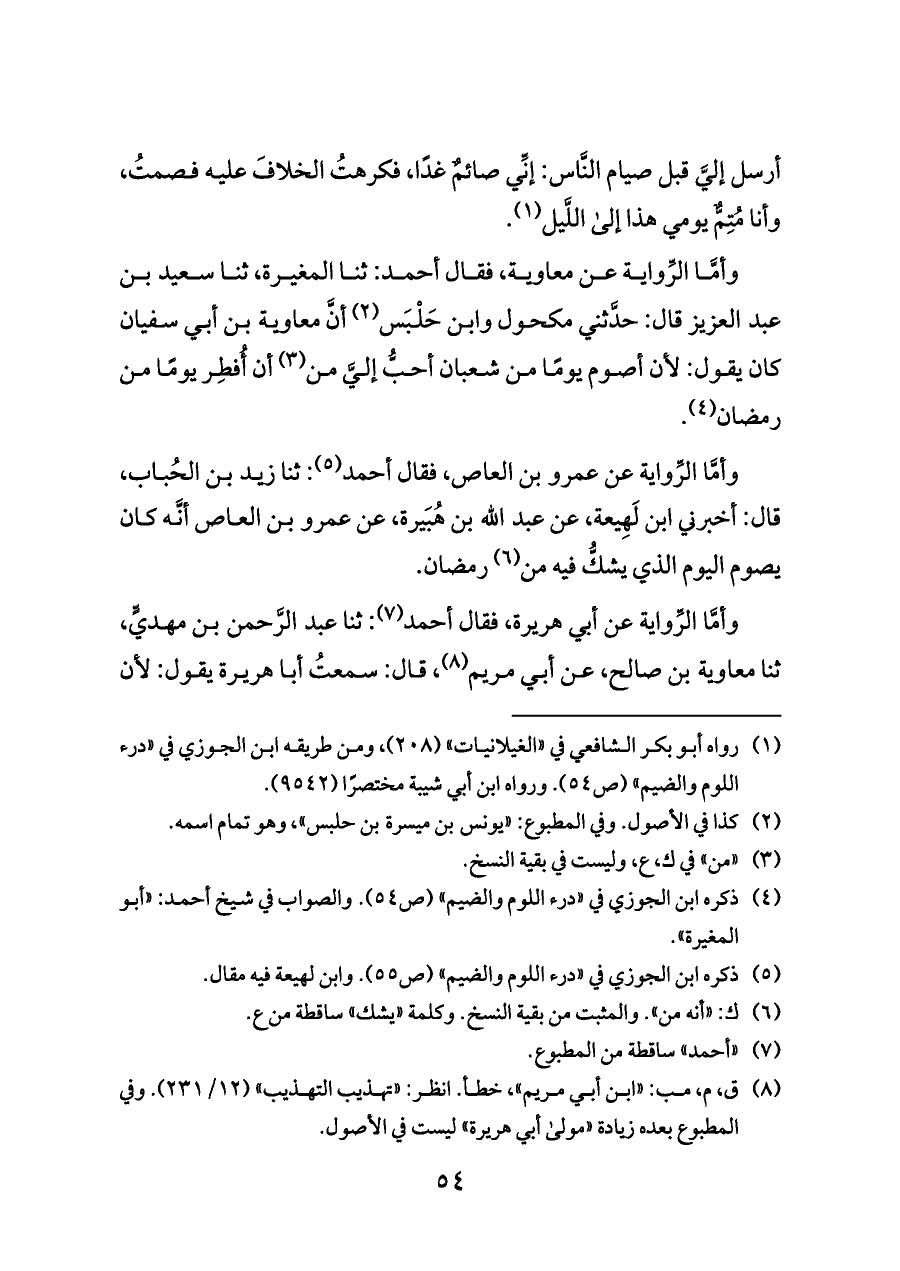 (¬٤) ذكره ابن الجوزي في «درء اللوم والضيم» (ص ٥٤). والصواب في شيخ أحمد: «أبو المغيرة».