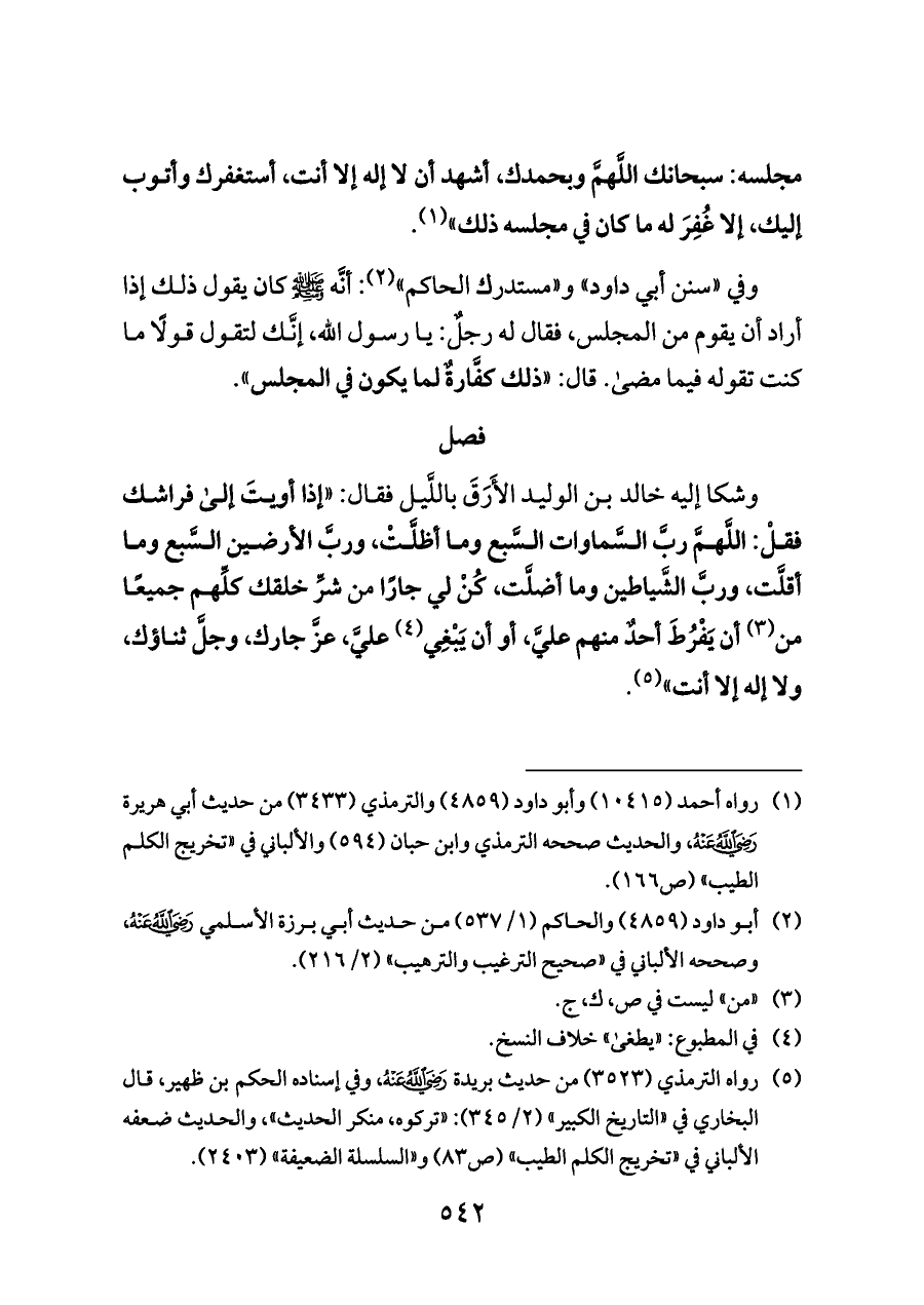 وفي «سنن أبي داود» و «مستدرك الحاكم» (¬٢): أنَّه - صلى الله عليه وسلم - كان يقول ذلك إذا أراد أن يقوم من المجلس، فقال له رجلٌ: يا رسول اللَّه، إنَّك لتقول قولًا ما كنت تقوله فيما مضى. قال: «ذلك كفَّارةٌ لما يكون في المجلس».