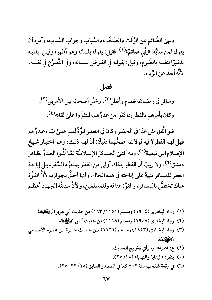 (¬٣) رواه البخاري (١٩٤٣) ومسلم (١١٢١) من حديث حمزة بن عمرو الأسلمي - رضي الله عنه -.