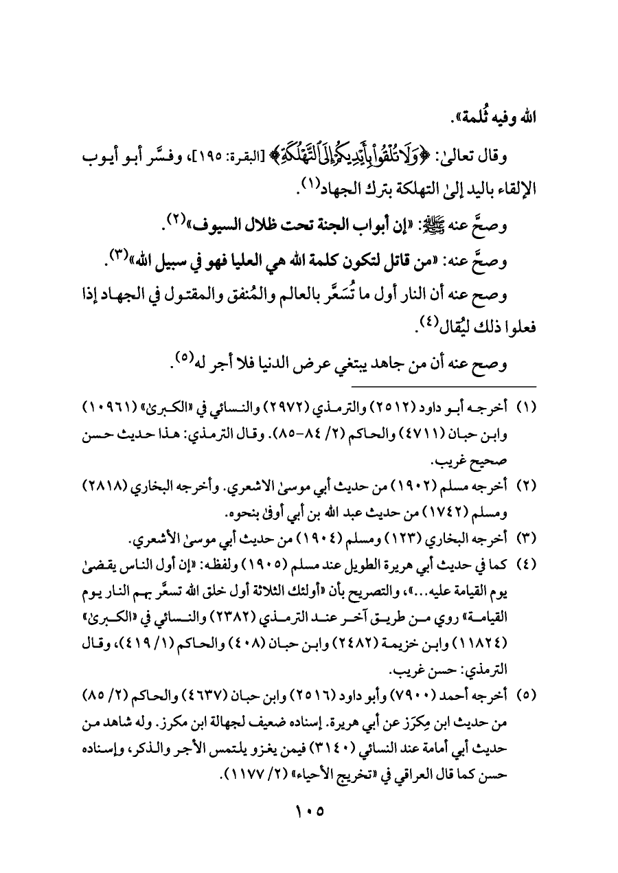 وصحَّ عنه: «من قاتل لتكون كلمة الله هي العليا فهو في سبيل الله» (¬٣).