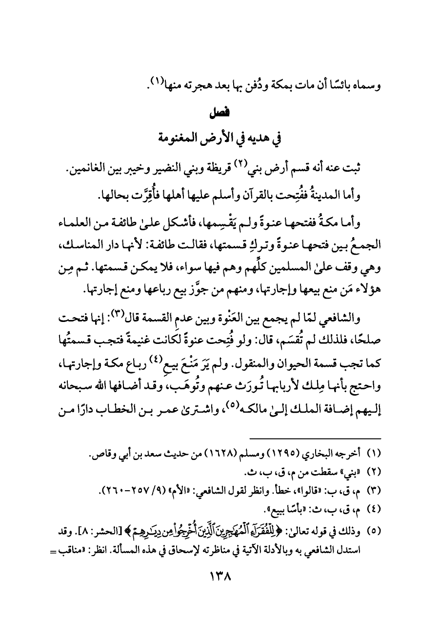(¬٥) وذلك في قوله تعالى: {لِلْفُقَرَاءِ الْمُهَاجِرِينَ الَّذِينَ أُخْرِجُوا مِنْ دِيَارِهِمْ} [الحشر: ٨]. وقد استدل الشافعي به وبالأدلة الآتية في مناظرته لإسحاق في هذه المسألة. انظر: «مناقب الشافعي» لابن أبي حاتم (ص ١٣٦) وللبيهقي (١/ ٢١٣) و «معرفة السنن والآثار» (٨/ ٢١٢ - ٢١٣).