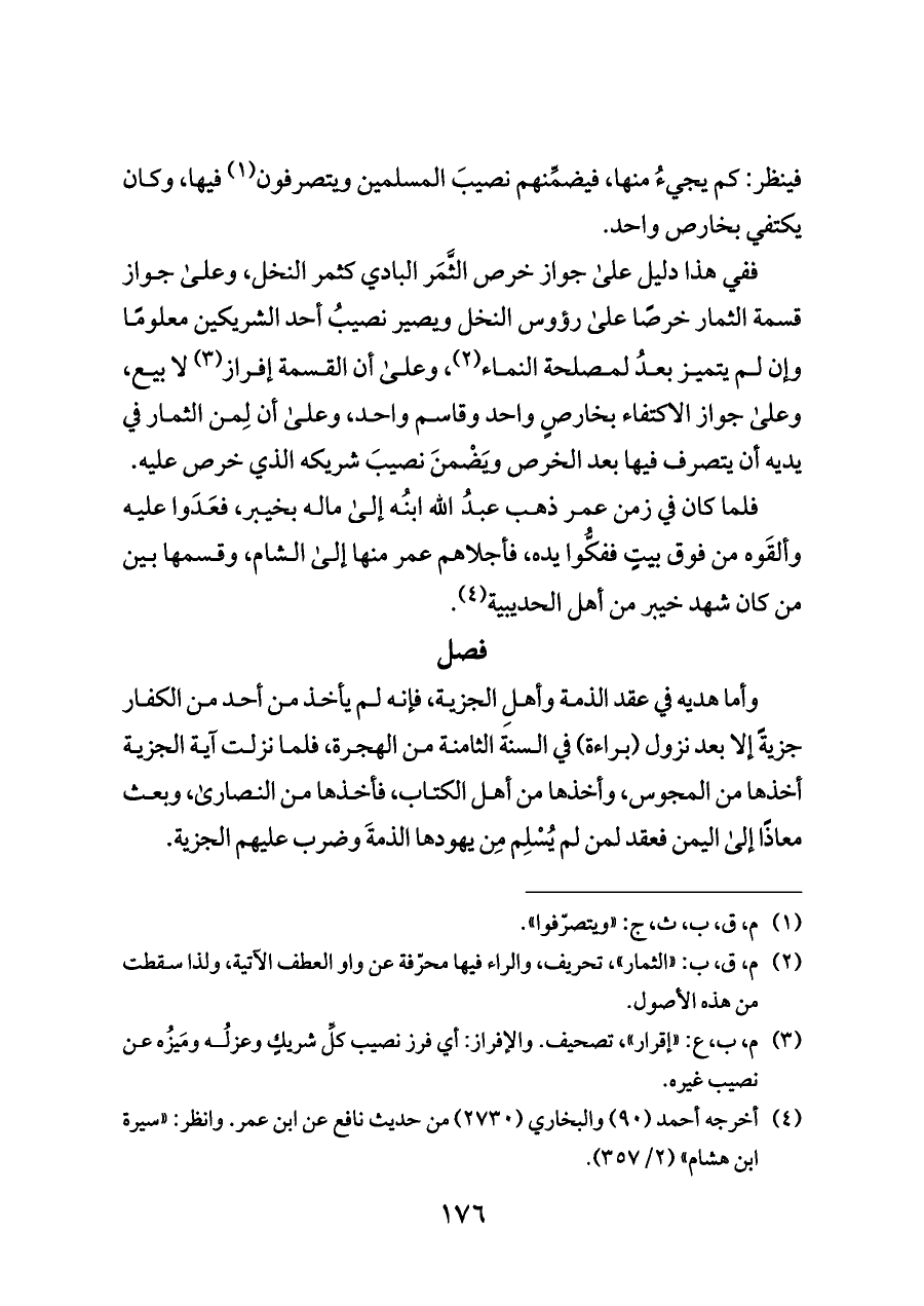 (¬٢) م، ق، ب: «الثمار»، تحريف، والراء فيها محرّفة عن واو العطف الآتية، ولذا سقطت من هذه الأصول.
