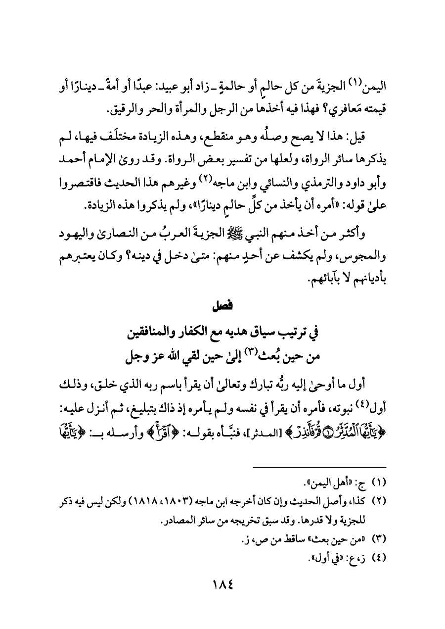 وأكثر من أخذ منهم النبي - صلى الله عليه وسلم - الجزيةَ العربُ من النصارى واليهود والمجوس، ولم يكشف عن أحدٍ منهم: متى دخل في دينه؟ وكان يعتبرهم بأديانهم لا بآبائهم.