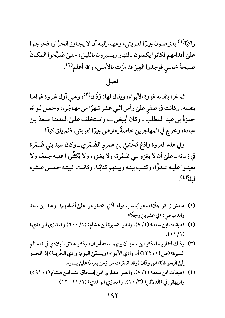 (¬٢) «طبقات ابن سعد» (٢/ ٧). وانظر: «سيرة ابن هشام» (١/ ٦٠٠) و «مغازي الواقدي» (١/ ١١).