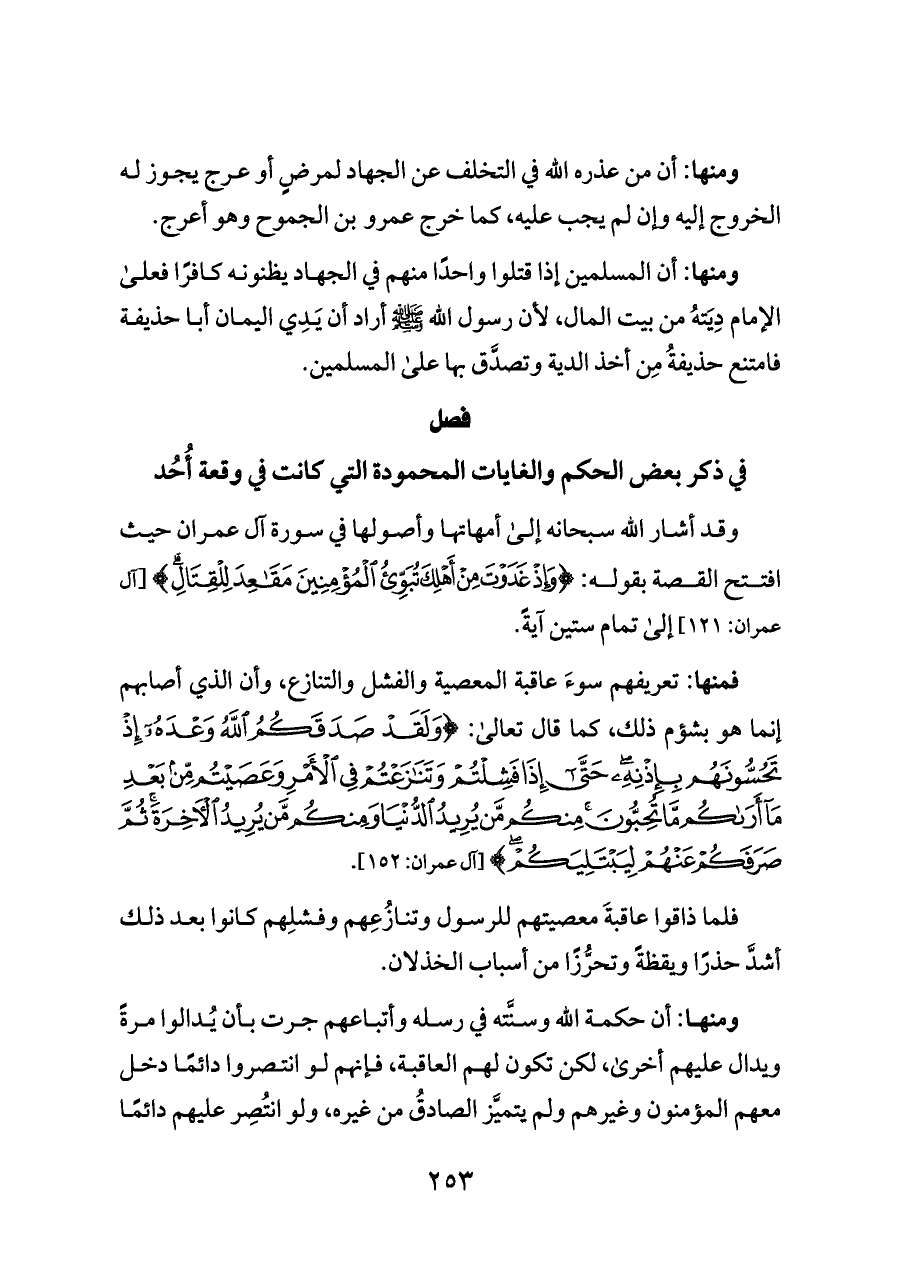 في ذكر بعض الحكم والغايات المحمودة التي كانت في وقعة أُحُد
