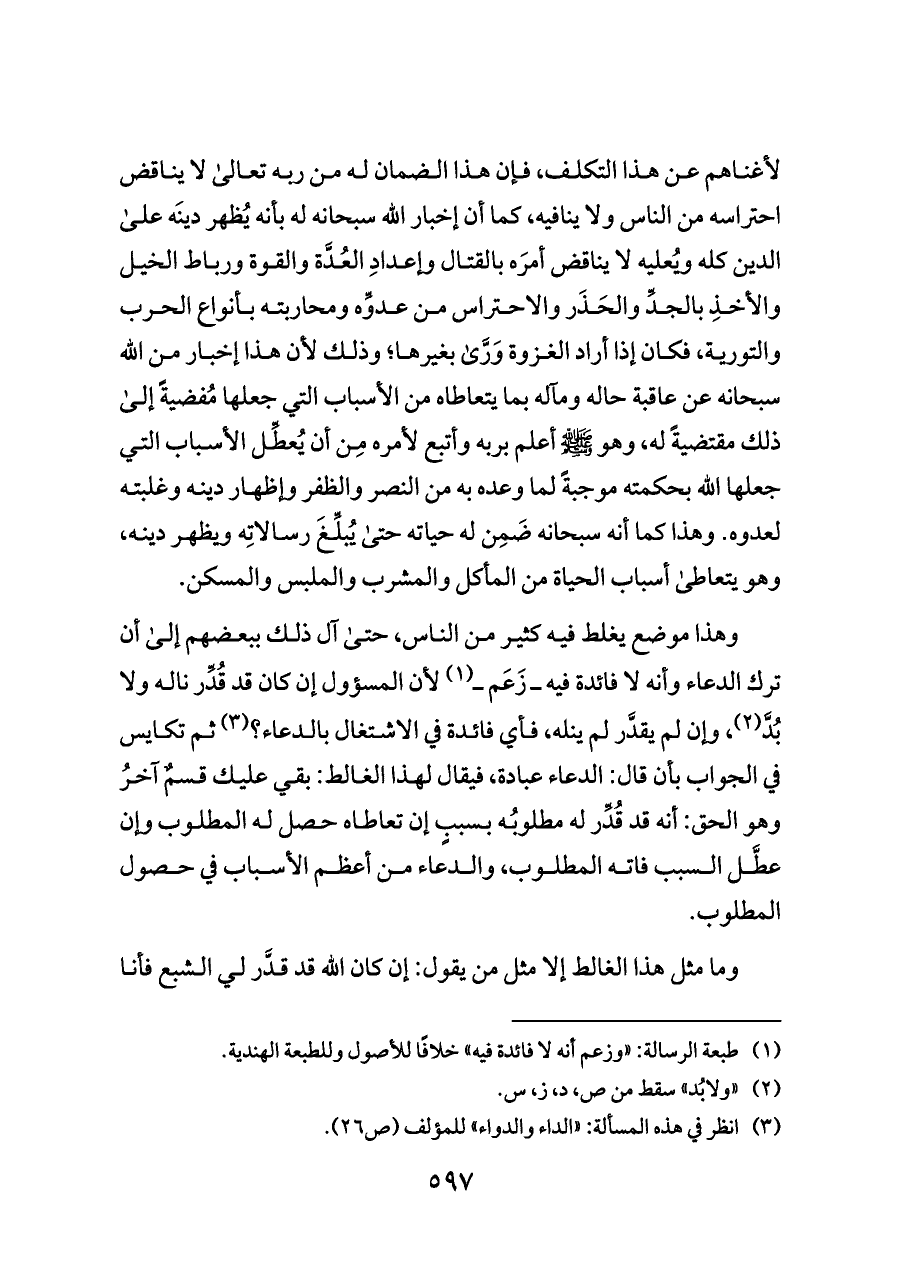 (¬٣) انظر في هذه المسألة: «الداء والدواء» للمؤلف (ص ٢٦).