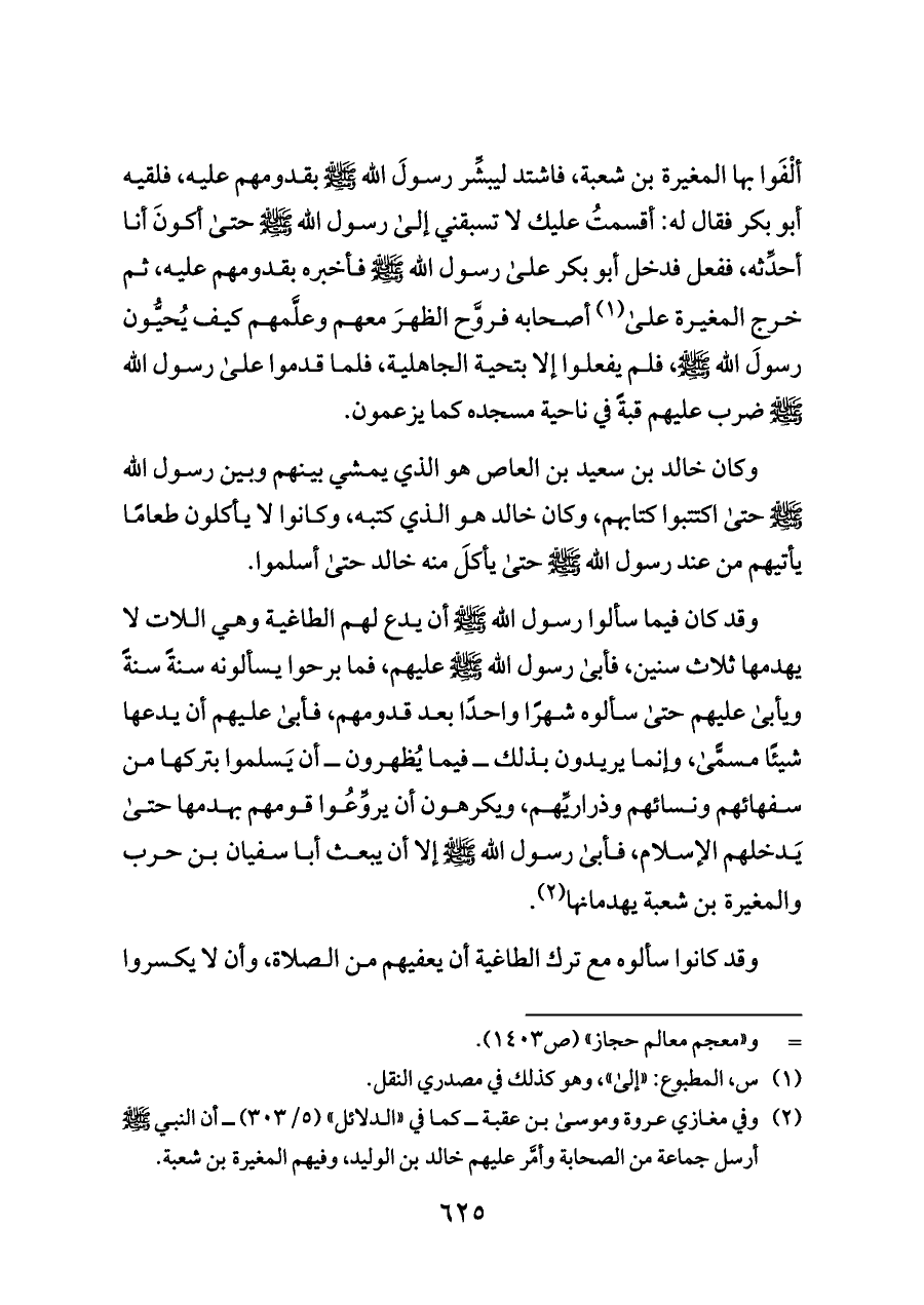 (¬٢) وفي مغازي عروة وموسى بن عقبة ــ كما في «الدلائل» (٥/ ٣٠٣) ــ أن النبي - صلى الله عليه وسلم - أرسل جماعة من الصحابة وأمَّر عليهم خالد بن الوليد، وفيهم المغيرة بن شعبة.