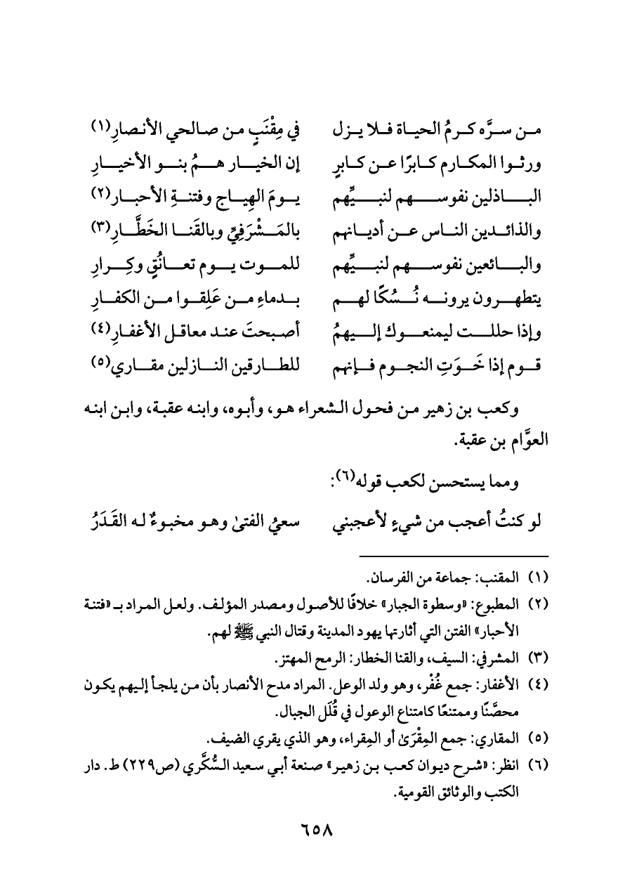 (¬٦) انظر: «شرح ديوان كعب بن زهير» صنعة أبي سعيد السُّكَّري (ص ٢٢٩) ط. دار الكتب والوثائق القومية.