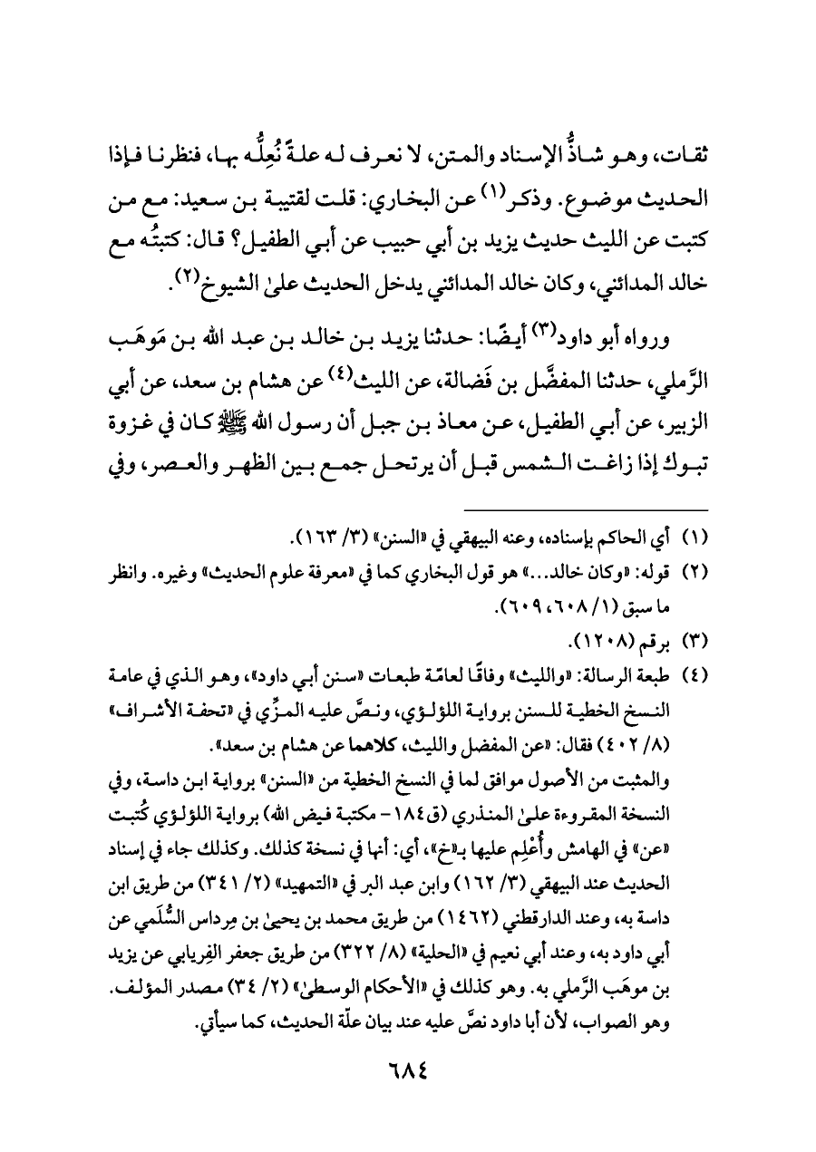 ورواه أبو داود (¬٣) أيضًا: حدثنا يزيد بن خالد بن عبد الله بن مَوهَب الرَّملي، حدثنا المفضَّل بن فَضالة، عن الليث (¬٤)