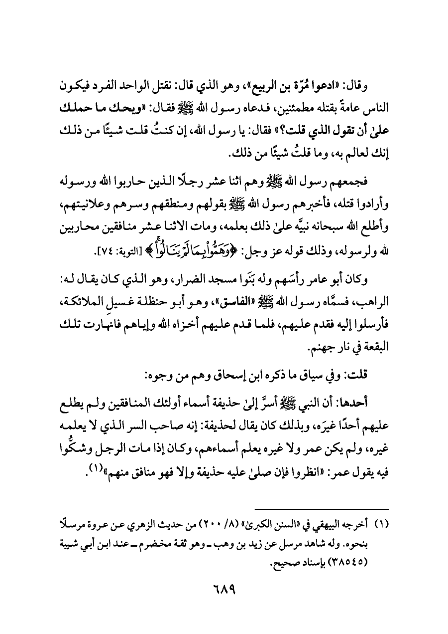 (¬١) أخرجه البيهقي في «السنن الكبرى» (٨/ ٢٠٠) من حديث الزهري عن عروة مرسلًا بنحوه. وله شاهد مرسل عن زيد بن وهب ــ وهو ثقة مخضرم ــ عند ابن أبي شيبة (٣٨٥٤٥) بإسناد صحيح.