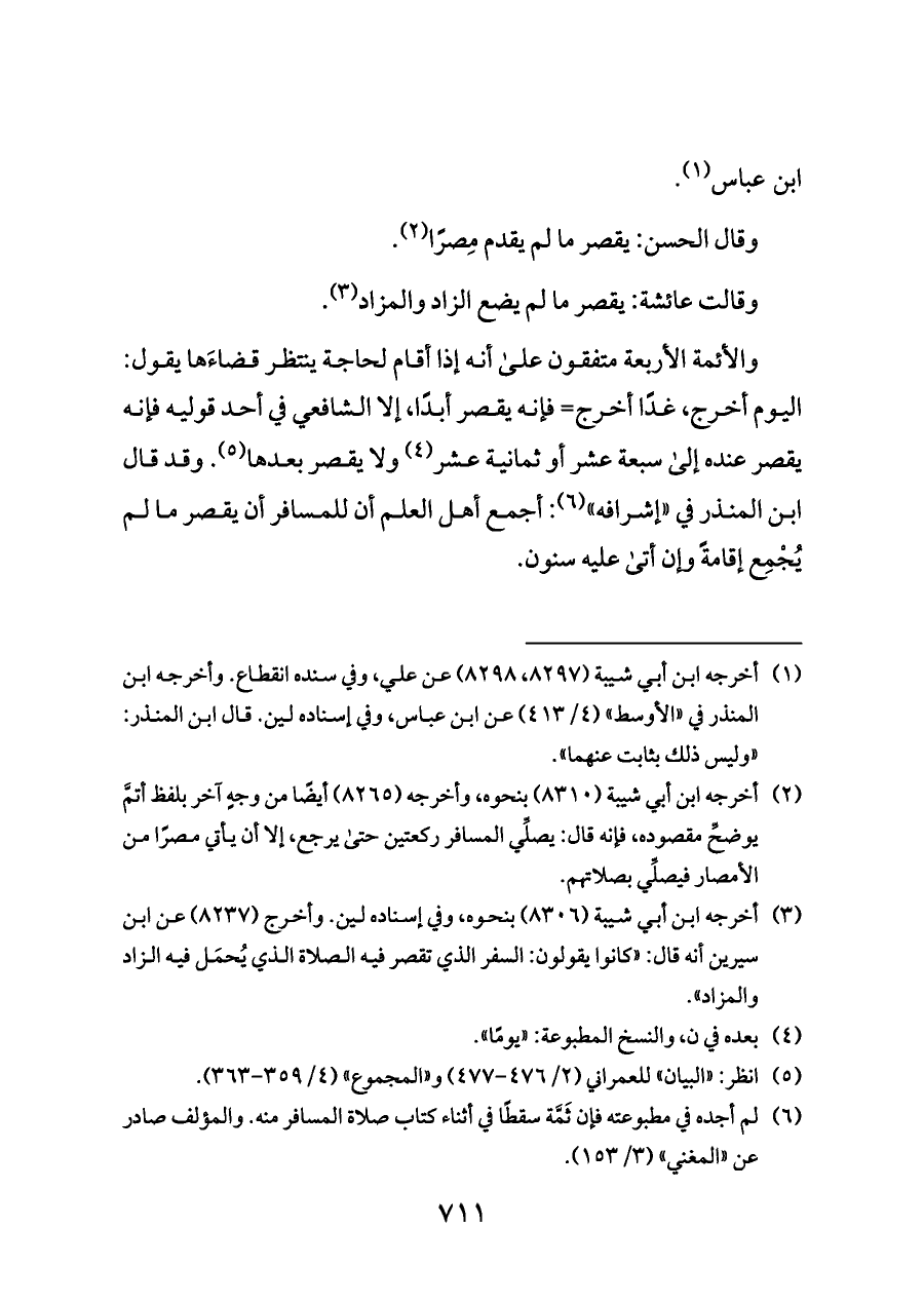 (¬٦) لم أجده في مطبوعته فإن ثَمَّة سقطًا في أثناء كتاب صلاة المسافر منه. والمؤلف صادر عن «المغني» (٣/ ١٥٣).