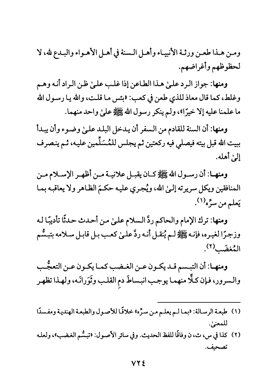 ومن هذا طعن ورثة الأنبياء وأهل السنة في أهل الأهواء والبدع لله، لا لحظوظهم وأغراضهم.