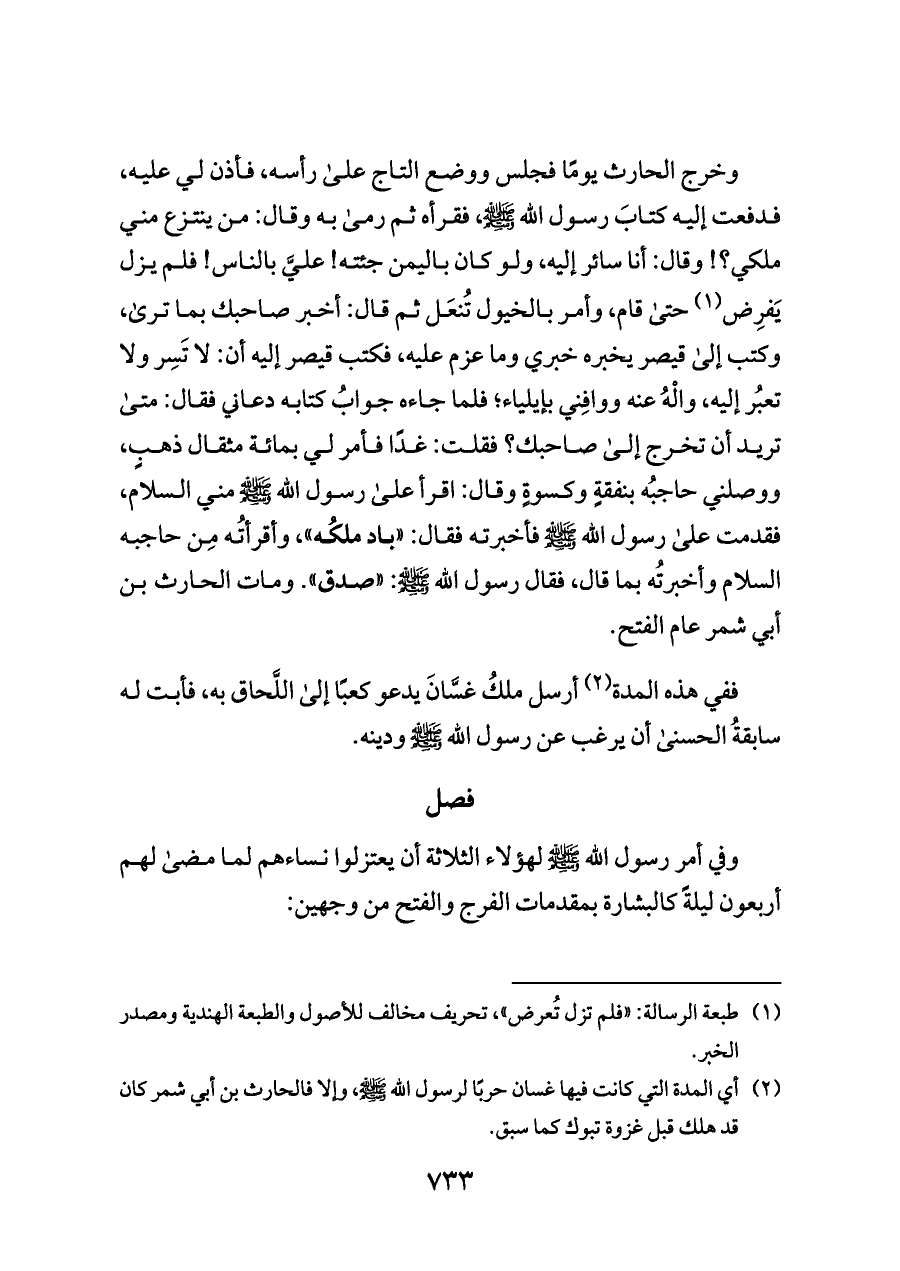 (¬٢) أي المدة التي كانت فيها غسان حربًا لرسول الله - صلى الله عليه وسلم -، وإلا فالحارث بن أبي شمر كان قد هلك قبل غزوة تبوك كما سبق.