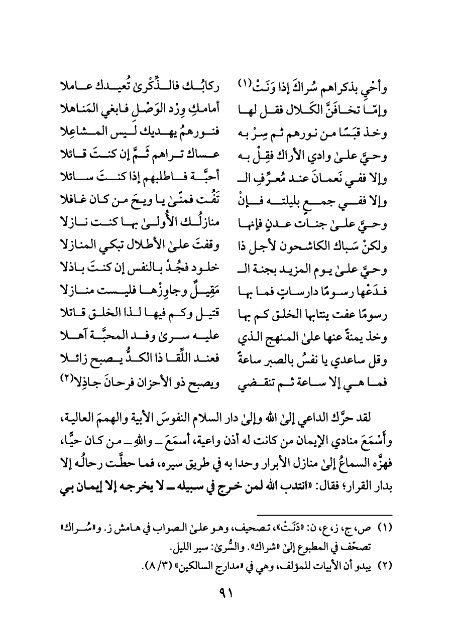 (¬٢) يبدو أن الأبيات للمؤلف، وهي في «مدارج السالكين» (٣/ ٨).