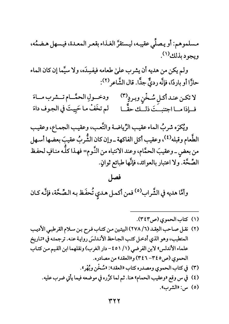لا تكن عند أكلِ سُخْنٍ وبردٍ (¬٣) ... ودخولِ الحمَّام تشرب ماءَ