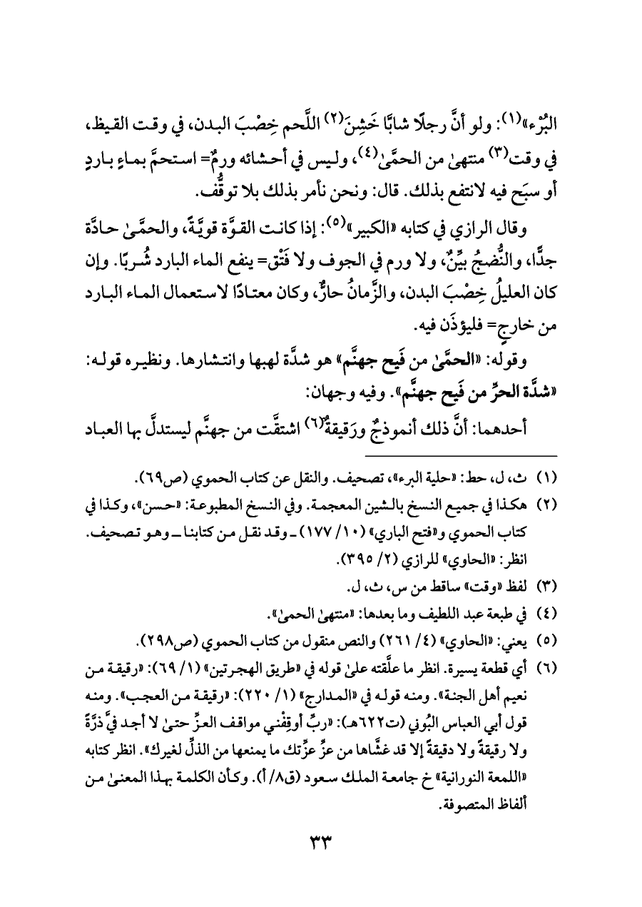 (¬١) ث، ل، حط: «حلية البرء»، تصحيف. والنقل عن كتاب الحموي (ص ٦٩).