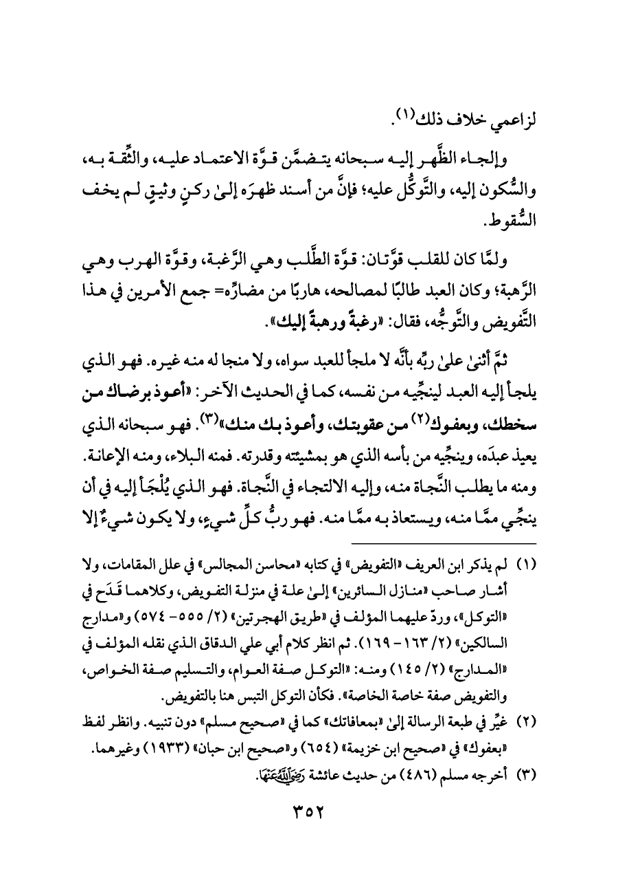 ولمَّا كان للقلب قوَّتان: قوَّة الطَّلب وهي الرَّغبة، وقوَّة الهرب وهي الرَّهبة؛ وكان العبد طالبًا لمصالحه، هاربًا من مضارِّه= جمع الأمرين في هذا التَّفويض والتَّوجُّه، فقال: «رغبةً ورهبةً إليك».