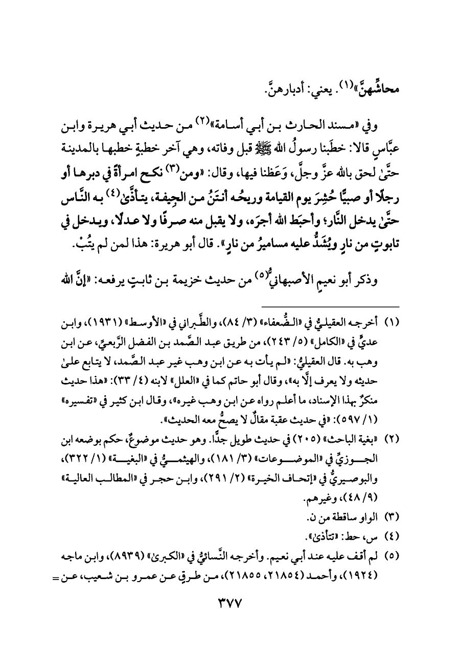 وفي «مسند الحارث بن أبي أسامة» (¬٢) من حديث أبي هريرة وابن عبَّاسٍ قالا: خطَبنا رسولُ الله - صلى الله عليه وسلم - قبل وفاته، وهي آخر خطبةٍ خطبها بالمدينة حتَّى لحق بالله عزَّ وجلَّ، وَعَظنا فيها، وقال: «ومن (¬٣) نكح امرأةً في دبرها أو رجلًا أو صبيًّا حُشِرَ يوم القيامة وريحُه أنتَنُ من الجِيفة، يتأذَّى (¬٤) به النَّاس حتَّى يدخل النَّار؛ وأحبَط الله أجرَه، ولا يقبل منه صرفًا ولا عدلًا، ويدخل في تابوتٍ من نارٍ ويُشَدُّ عليه مساميرُ من نارٍ». قال أبو هريرة: هذا لمن لم يتُبْ.